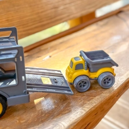 Didelis vežėjas su rampomis leidžia lengvai pakrauti ir pervežti visus tris automobilius. Stabili konstrukcija atlaiko net intensyvų vaikų žaidimą.