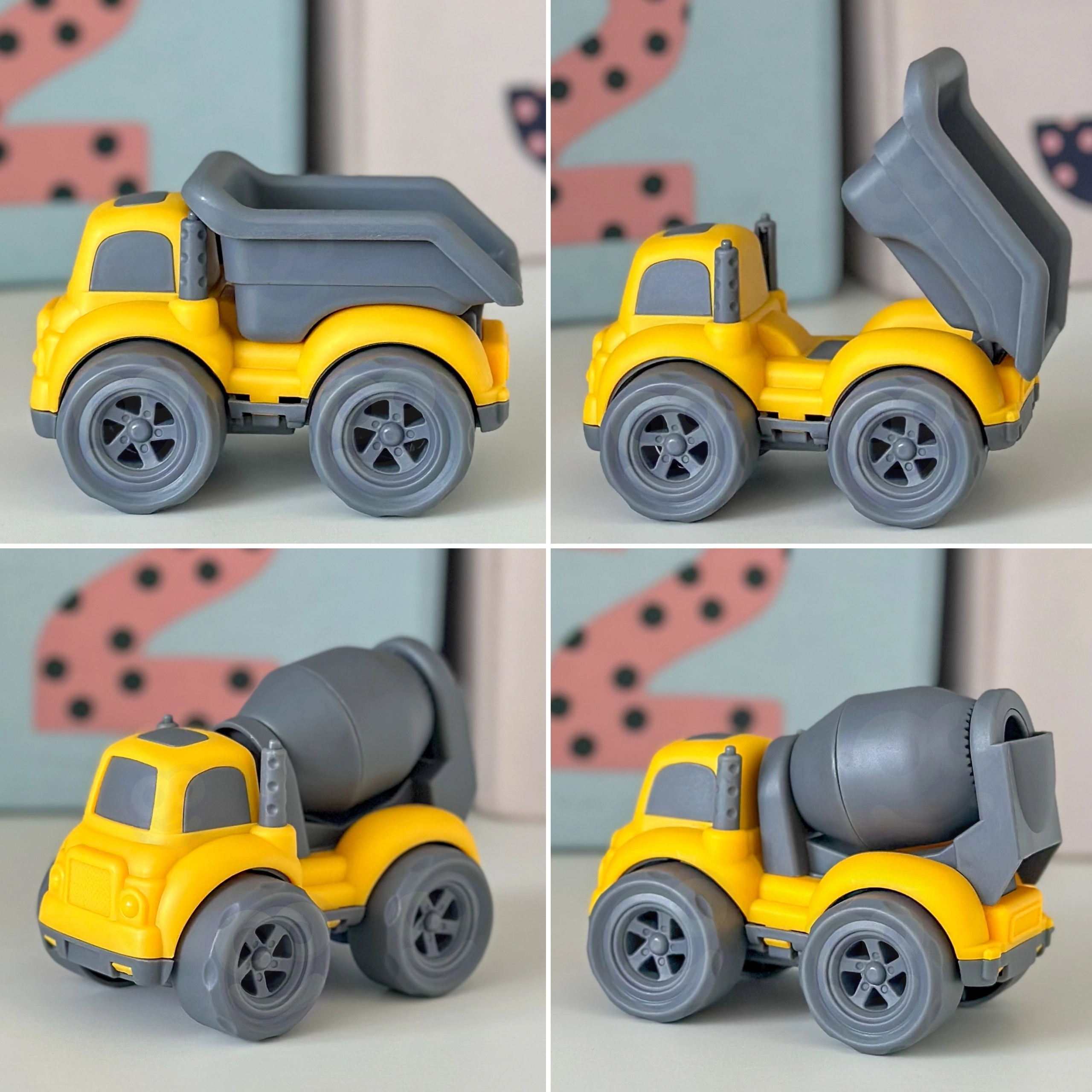 Savivartis su nulenkiama kėbulo dėže, maišyklė su besisukančiu būgnu ir šiukšliavežė dar realesniems statybų scenarijams.
