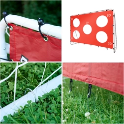 Taiklumo tinklelis turi įvairias, taškais pažymėtas angas, kurios skatina smūgio techniką ir ugdo sveiką sportinę konkurenciją. Nepraleiskite progos perkelti futbolo atmosferą į savo sodą – su vaikams tinkamais matmenimis ir atsparumu oro sąlygoms.