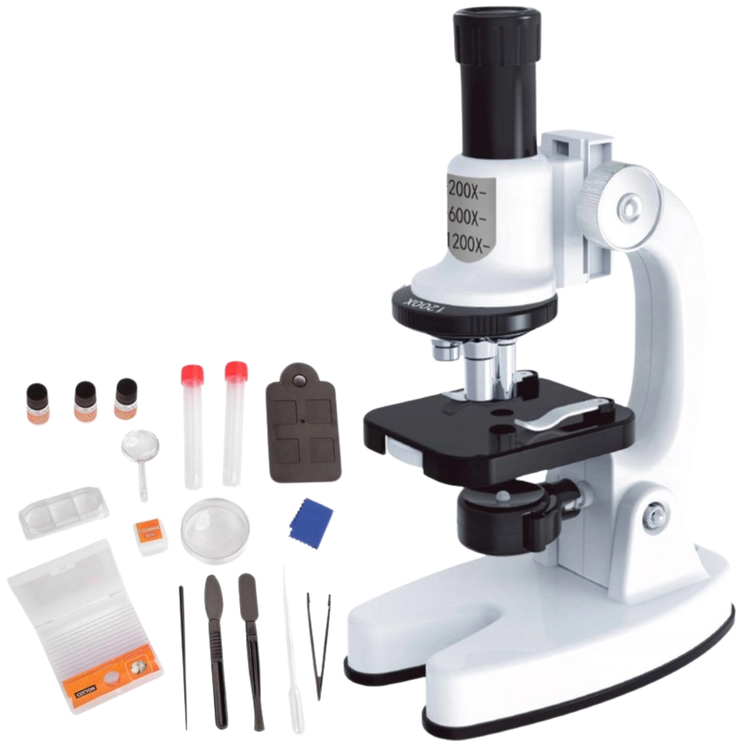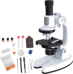 Šis kompaktiškas mikroskopas – puikus pasirinkimas pirmajai namų laboratorijai. Dėl trijų didinimo lygių 200x / 600x / 1200x, integruoto LED apšvietimo ir pasukamo spalvų filtro vaikai lengvai pamatys augalų ląstelių struktūras, skaidulas ir smulkias detales.