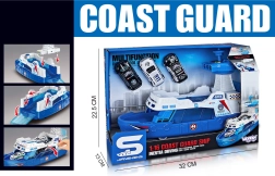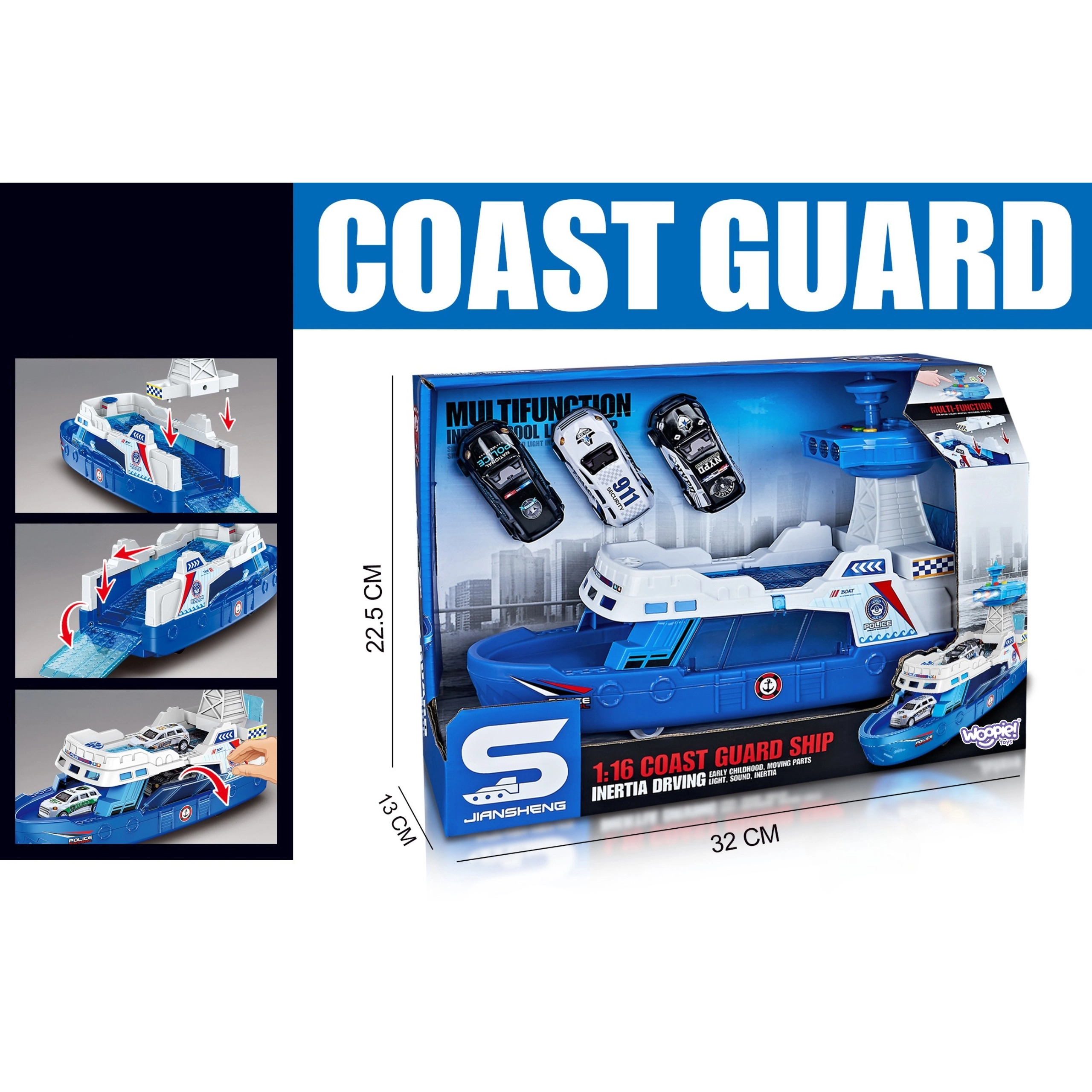 Laivas pagamintas iš aukštos kokybės, patvarių medžiagų, turi frikcinę pavarą (po pastūmimo važiuoja) ir gausių detalių, įskaitant atidengiamus denius, galinę rampą ir šonines duris. Rinkinyje yra 3 metaliniai policijos automobiliai, kuriuos galima krauti per rampą ir kurti įtemptas scenas. Įspėjimas: laivas neplaukia – skirtas žaisti ant žemės.