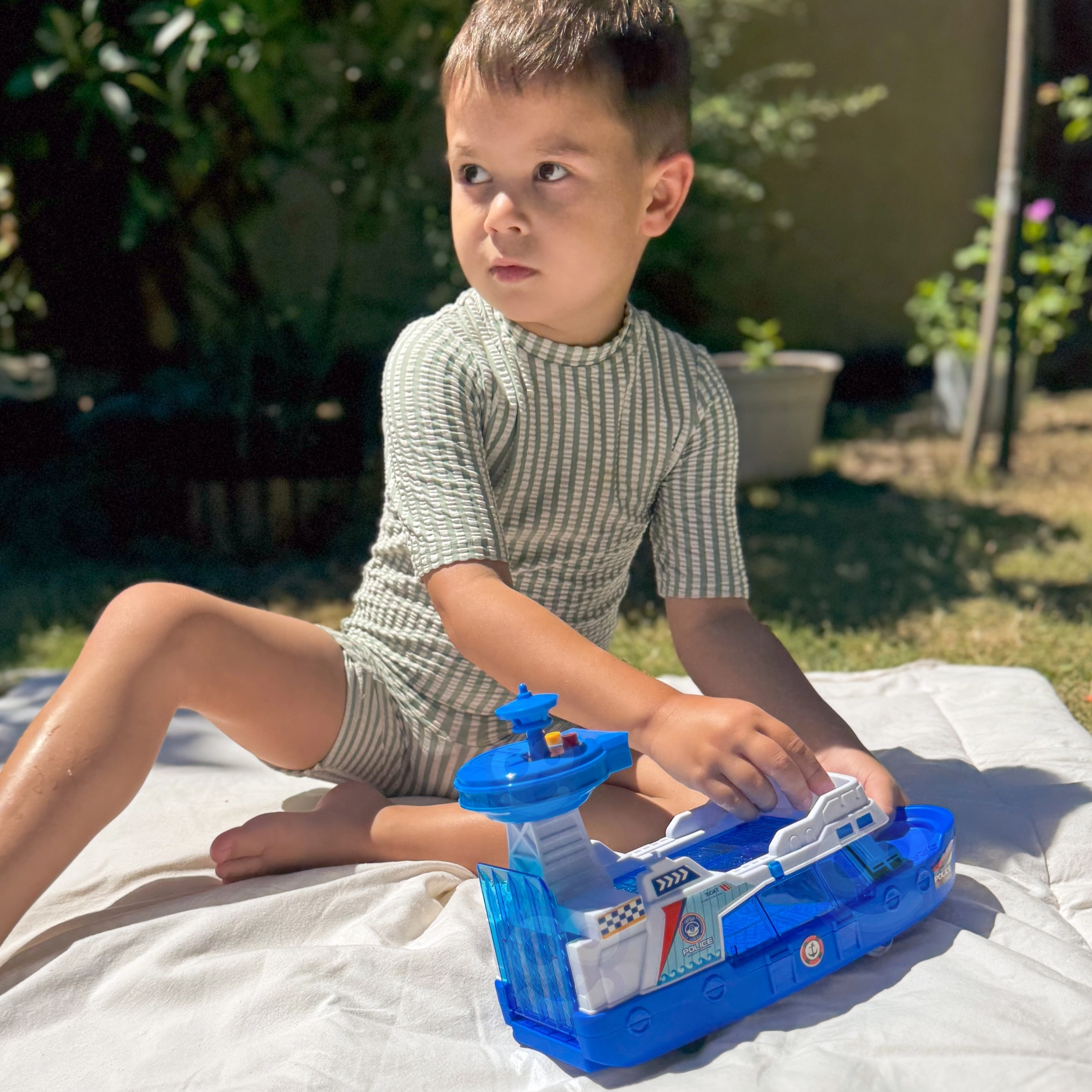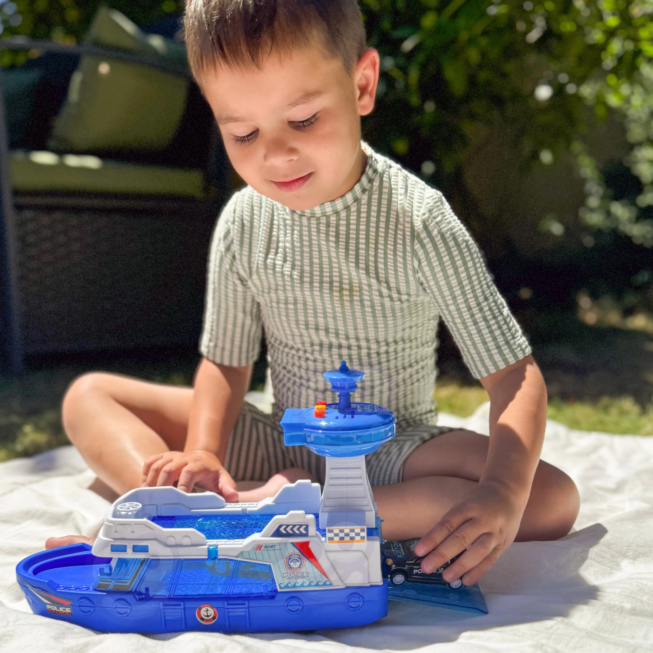 Šis interaktyvus policijos laivas suteikia vaikams intensyvių veiksmų pramogų ir lavina motoriką, vaizduotę bei kūrybiškumą. Dėl šviesų ir garso efektų bei daugybės judančių elementų jūsų vaikas lengvai įsijaus į patrulio vado vaidmenį.