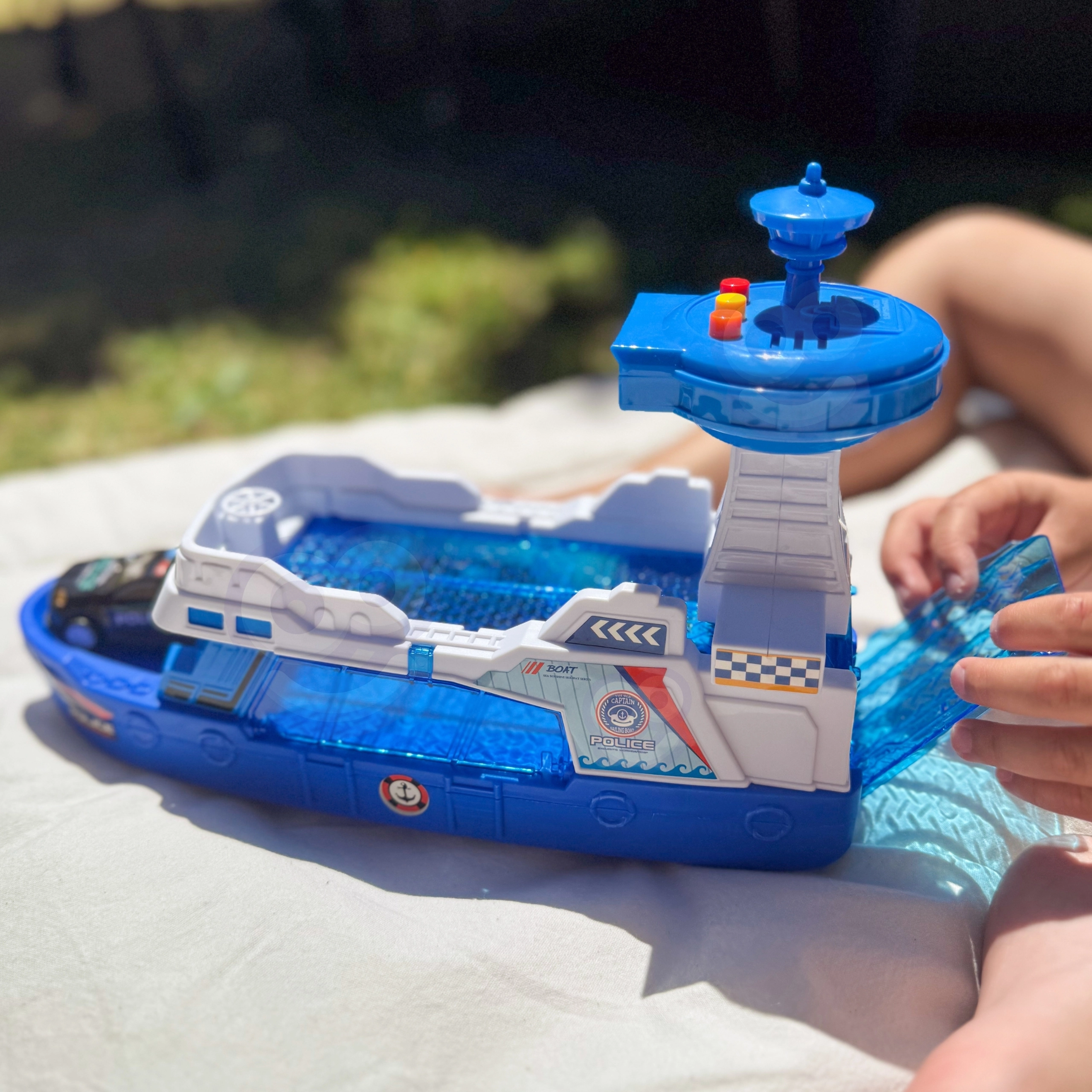 - Interaktyvus policijos patrulinis laivas su automobilių rinkiniu