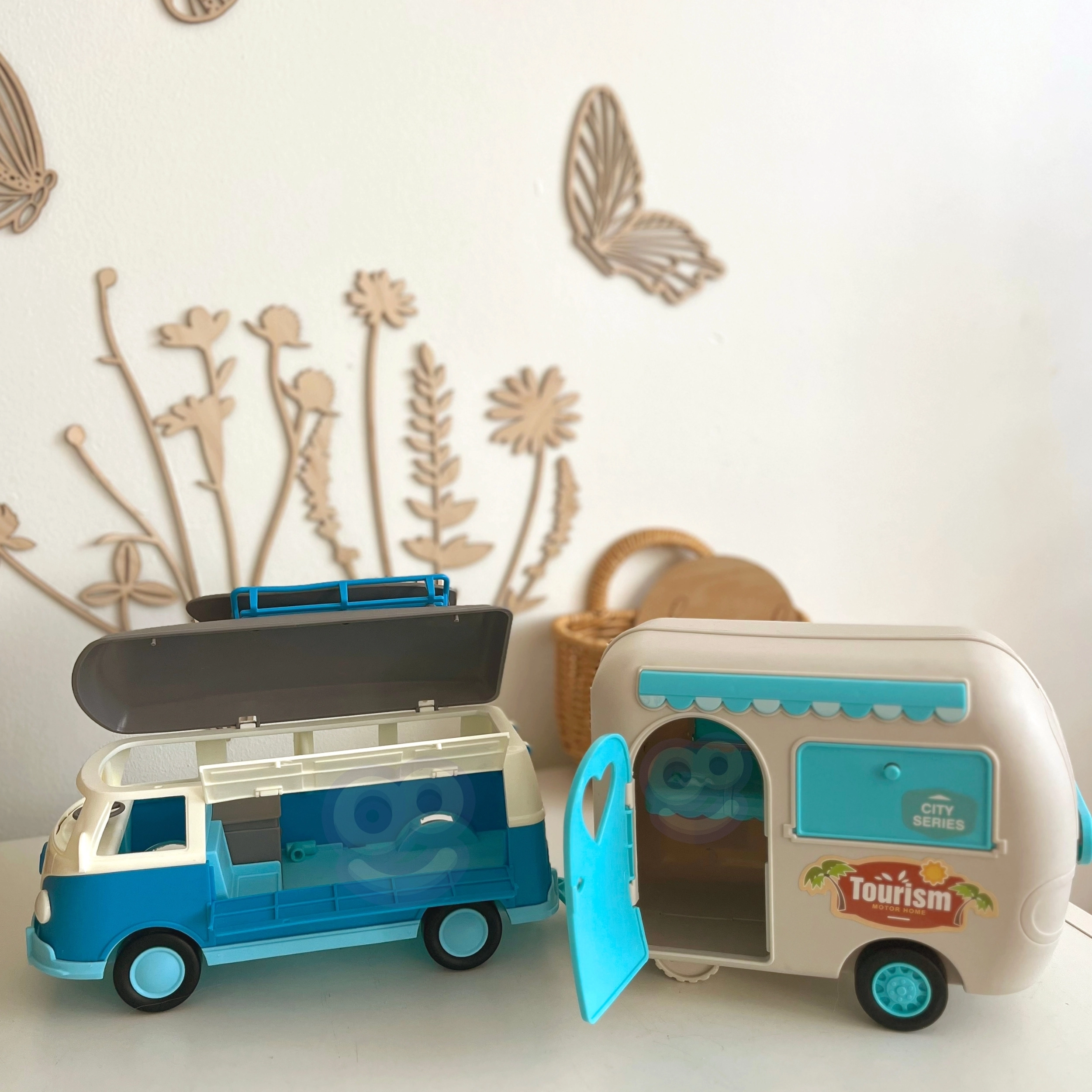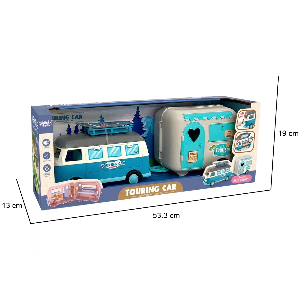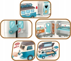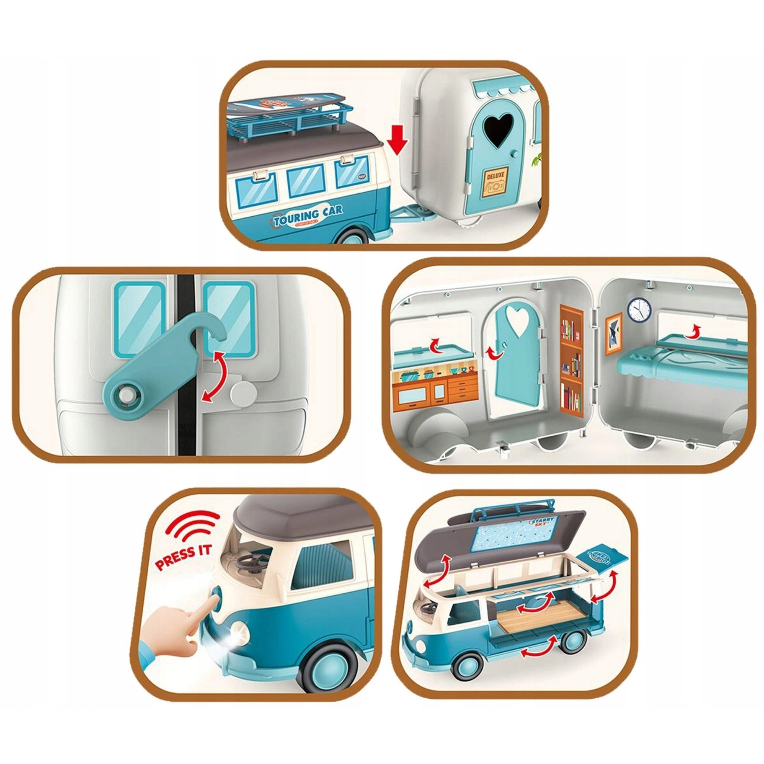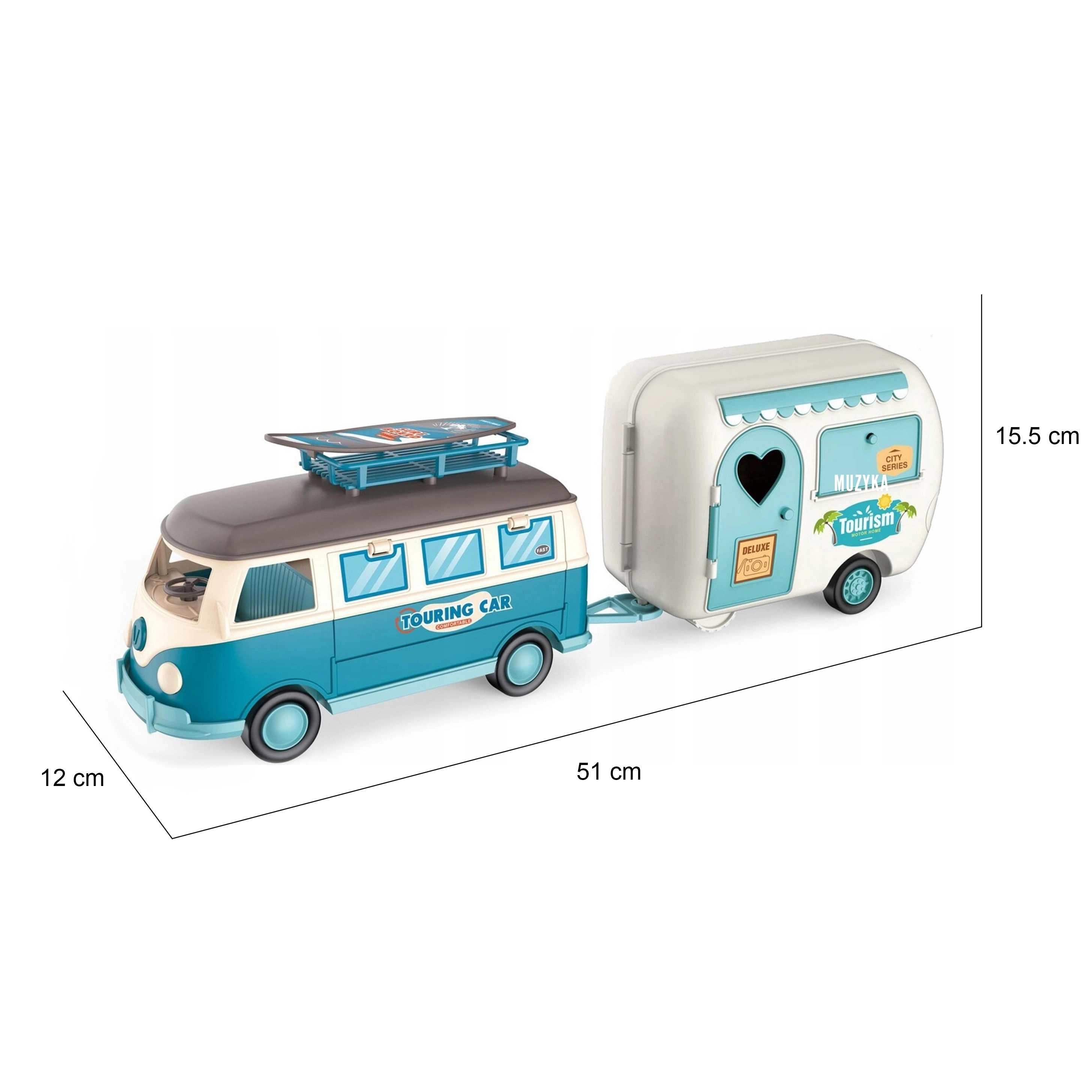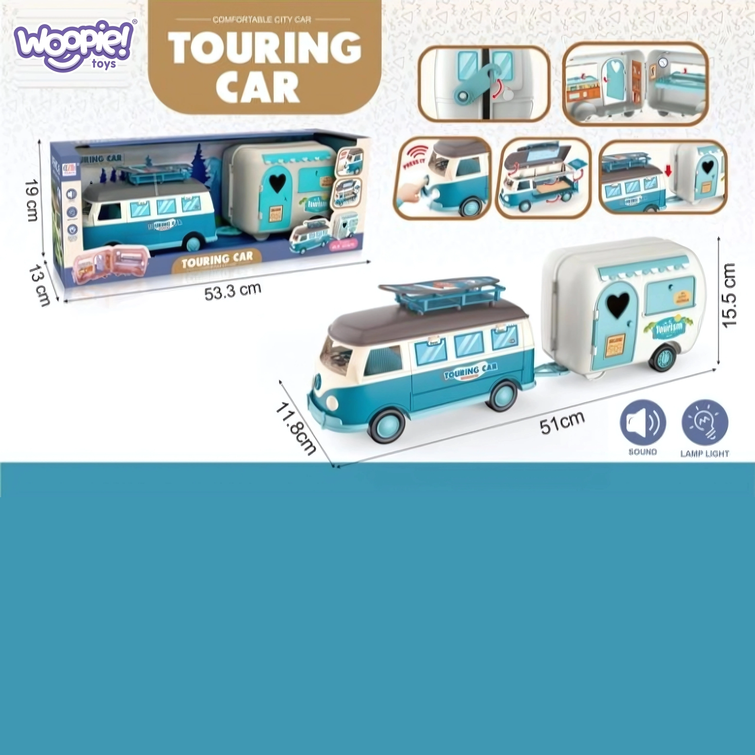 Atraskite nuostabių nuotykių pasaulį su išskirtiniu karavanu su priekaba iš prekės ženklo Woopie! Šis ryškiaspalvis, retro stiliaus žaislas puikiai tinka mažiesiems tyrinėtojams, kurie mėgsta kūrybiškus žaidimus. Karavanas su priekaba turi atidaromus elementus, realistišką interjerą ir šviesos bei garso efektus, kurie kiekvieną kelionę pavers nepamirštama.
