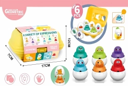 Kiekvieno kiaušinio apačioje yra unikali geometrinė forma, kuri įsistato į atitinkamą angą dėžutėje. Linksmos veidukų išraiškos puikiai padeda vaikams atpažinti ir įvardyti emocijas. Jie lengvai ir maloniai sužino, kaip atrodo skirtingi jausmai ir ką jie reiškia. Šis žaislas suteikia puikų loginio mąstymo ir koordinacijos lavinimą!