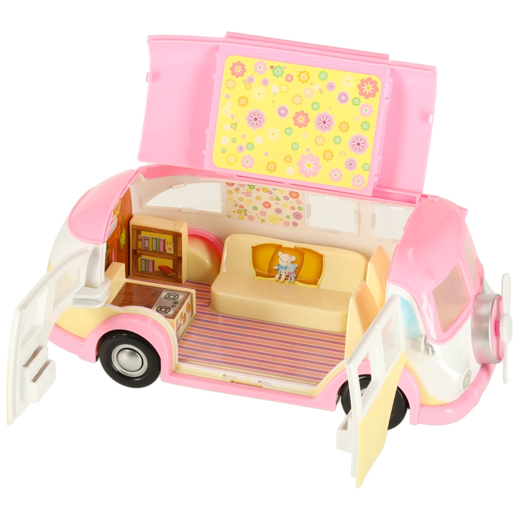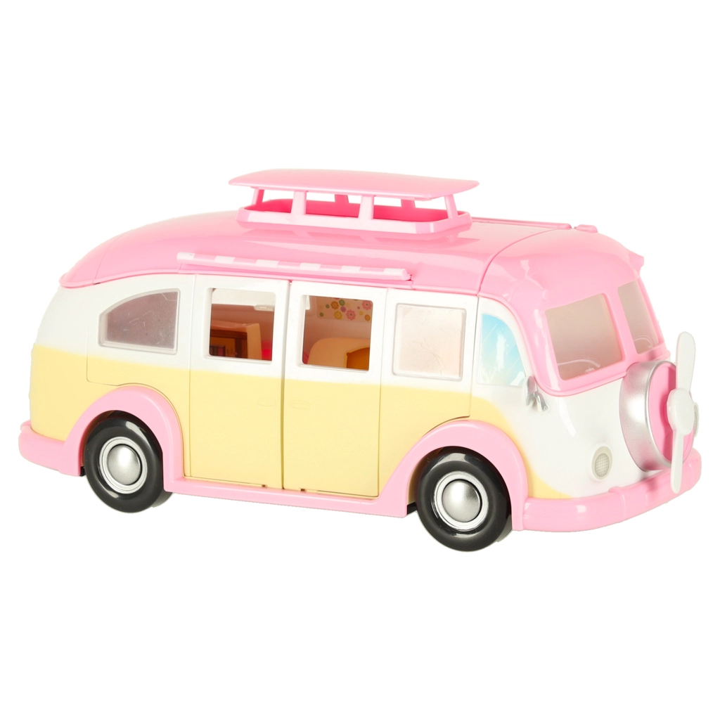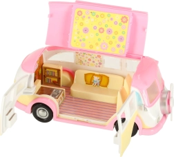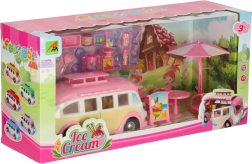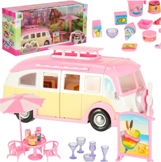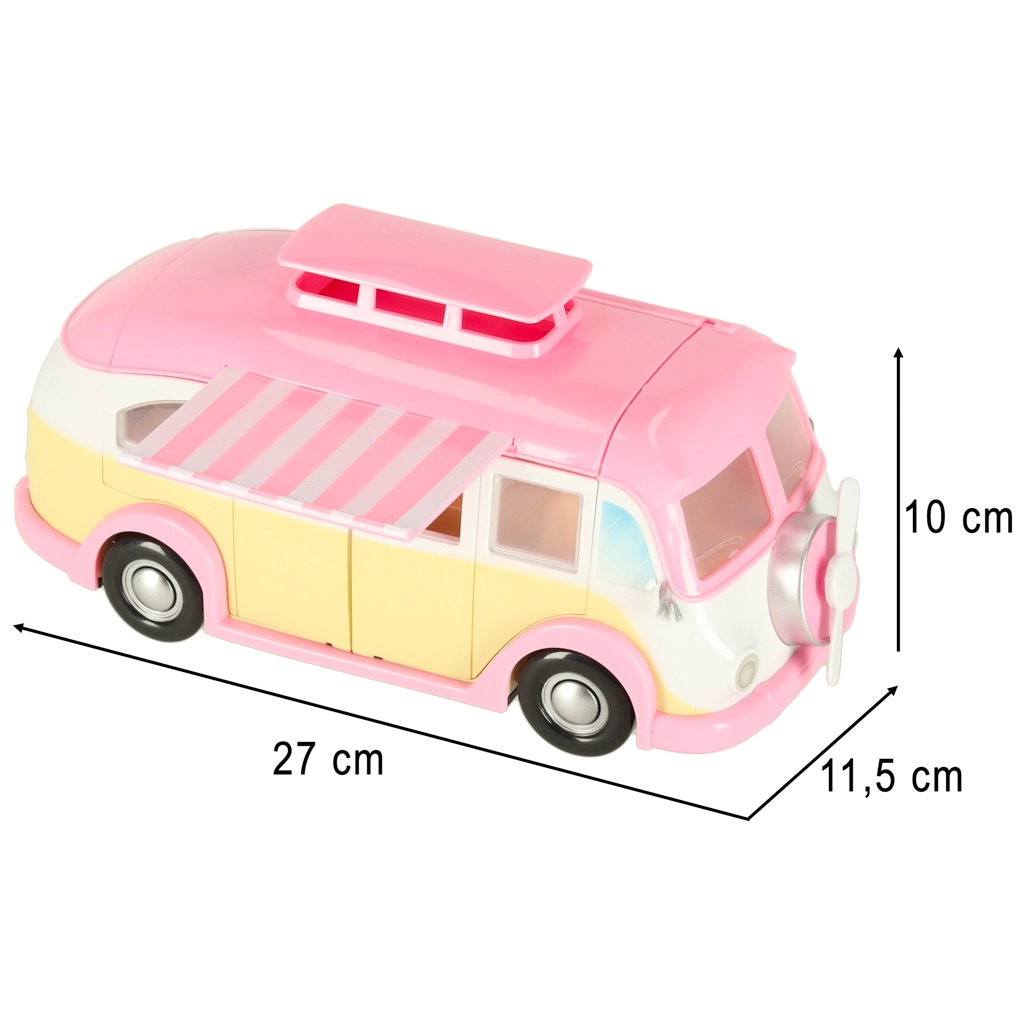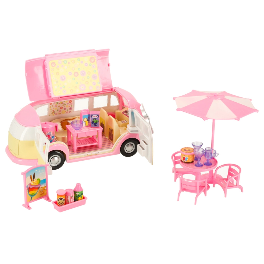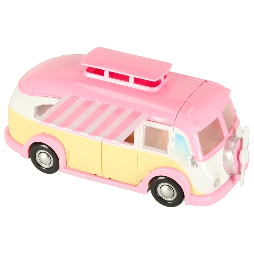 Šis žavus ledų kemperis rožinės ir kreminės spalvų derinyje bet kurį kambarį pavers mažu bistro ant ratų. Vaikai gali atidaryti stogą ir duris, ištraukti markizę ir aptarnauti klientus prie staliuko su skėčiu. Realistiškos interjero detalės skatina kūrybiškus pasakojimus ir ilgas žaidimo valandas.