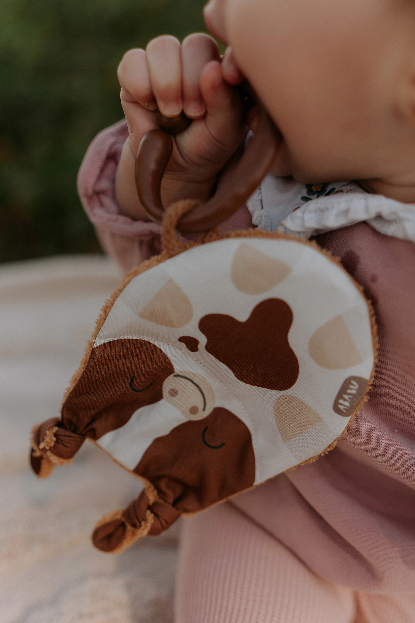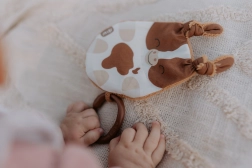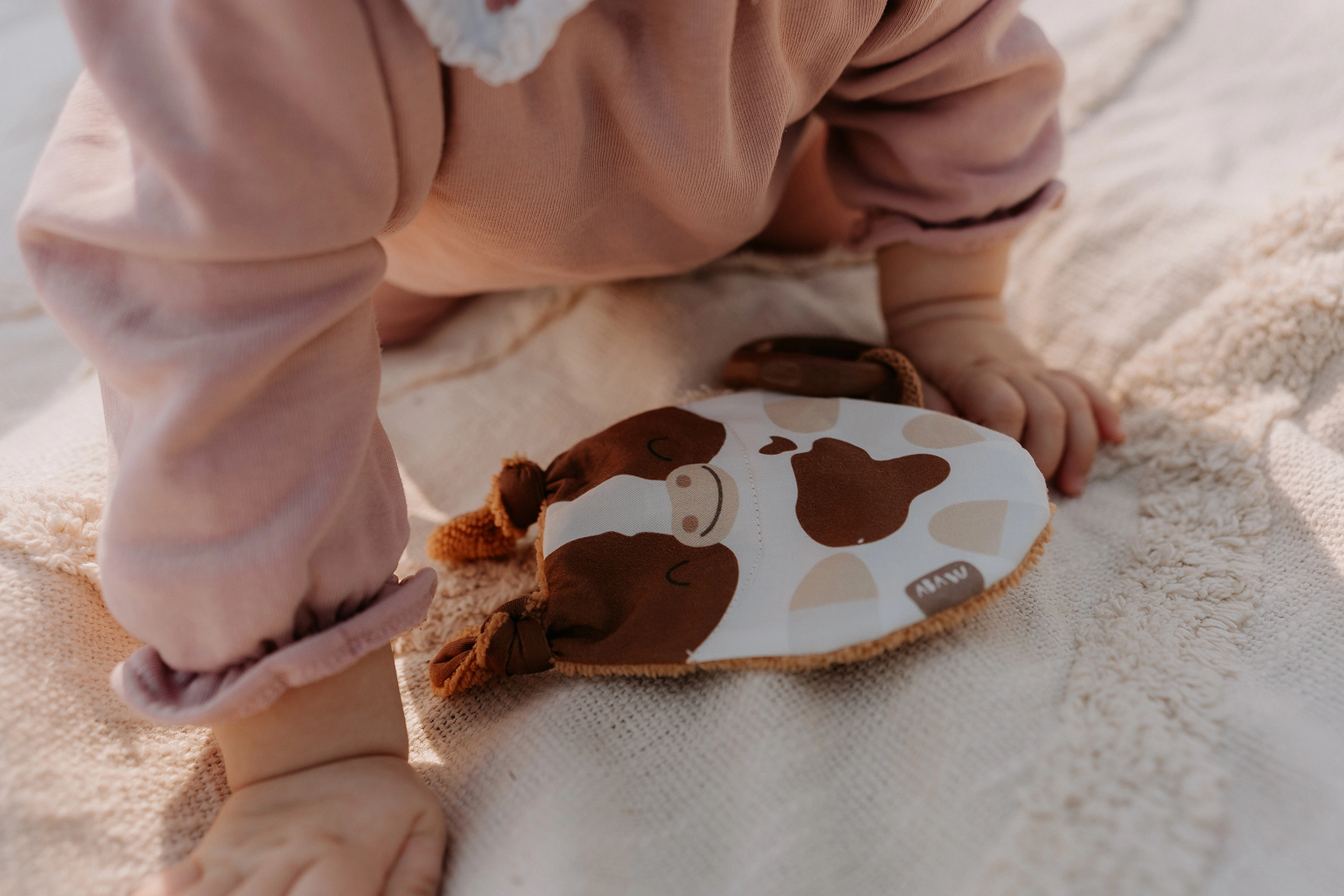 Pagamintas iš kokybiškų medžiagų, žaislas Veršiukas siūlo daugybę įdomių elementų, kurie lavina mažiausiųjų pojūčius. Veidelis iš 100% medvilninio, spaustu audinio, sertifikuoto vaikams iki 3 metų. Nugarėlė iš bambukinio frote suteikia minkštą ir malonų paviršių.