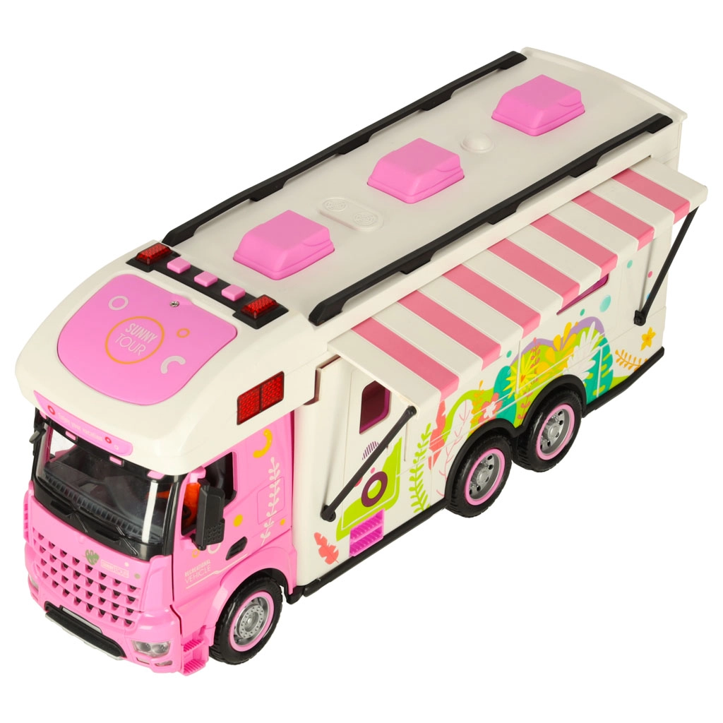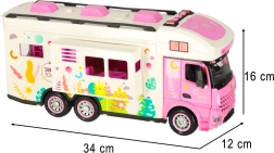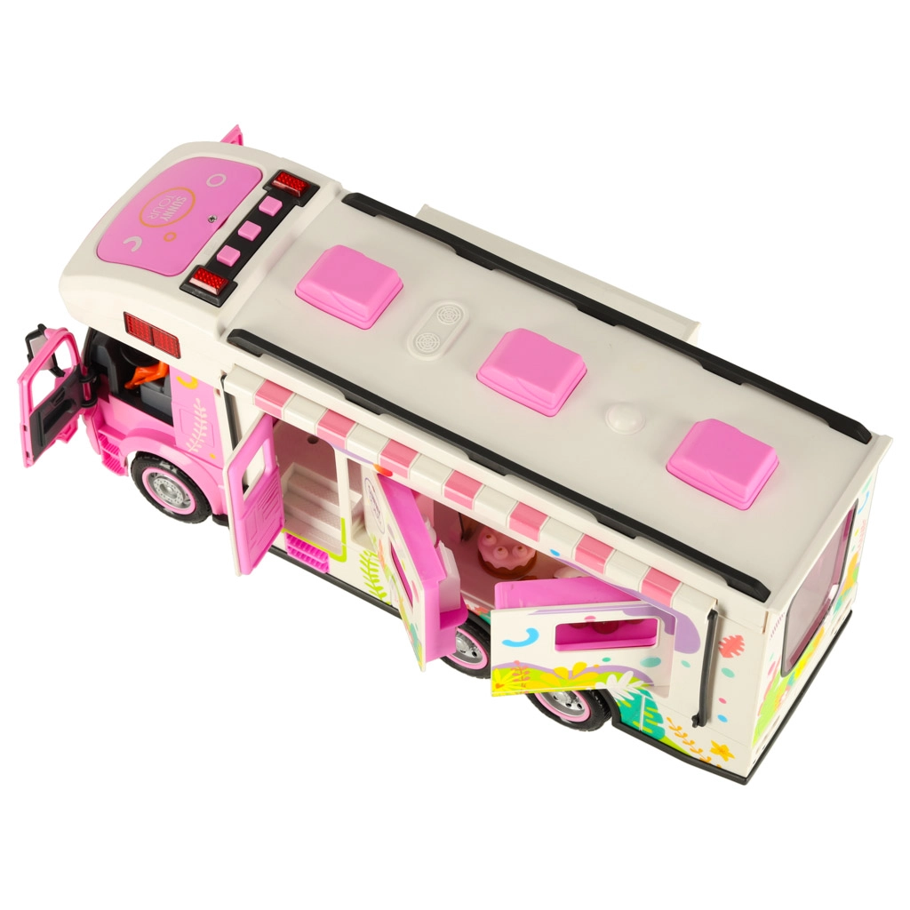 Atraskite stovyklavimo pasaulį su šiuo interaktyviu karavanu – idealiu palydovu mažiesiems nuotykių ieškotojams. Vaikai gali nuotolinio valdymo pultu vairuoti karavaną į priekį, atgal, į kairę ir į dešinę, taip patirdami realistišką vairavimą. Be to, karavanas turi žibintus ir garsus, kurie suteikia dar daugiau pramogų. Žaislas tinkamas vaikams nuo 3 metų.