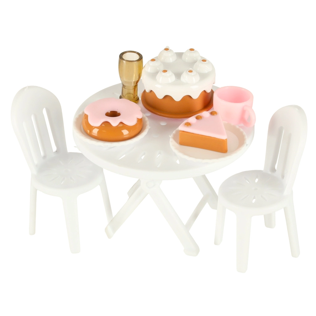 Šiame rinkinyje yra įvairių priedų, leidžiančių vaikams imituoti tikrą stovyklavimą. Į komplektą įeina staliukas, kėdės, mini indai ir lipdukai, suteikiantys asmeninį akcentą. Vaikai taip pat gali pastatyti reklaminį banerį ir sodo skėtį, kas suteikia dar daugiau žaidimo galimybių.