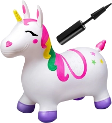 Atsineškite namo magišką fantazijos pasaulį su pripučiamu šokinėjančiu vienaragių. Jis pagamintas iš saugių ir patvarių medžiagų ir turi patogias rankenas saugiam šokinėjimui. Šis gaminys tinka vaikams nuo 12 mėnesių, o didžiausia apkrova – iki 45 kg. Dėl išskirtinio dizaino ir plačios bazės su neslystančiomis kojelėmis užtikrinamas stabilumas ir saugumas.
