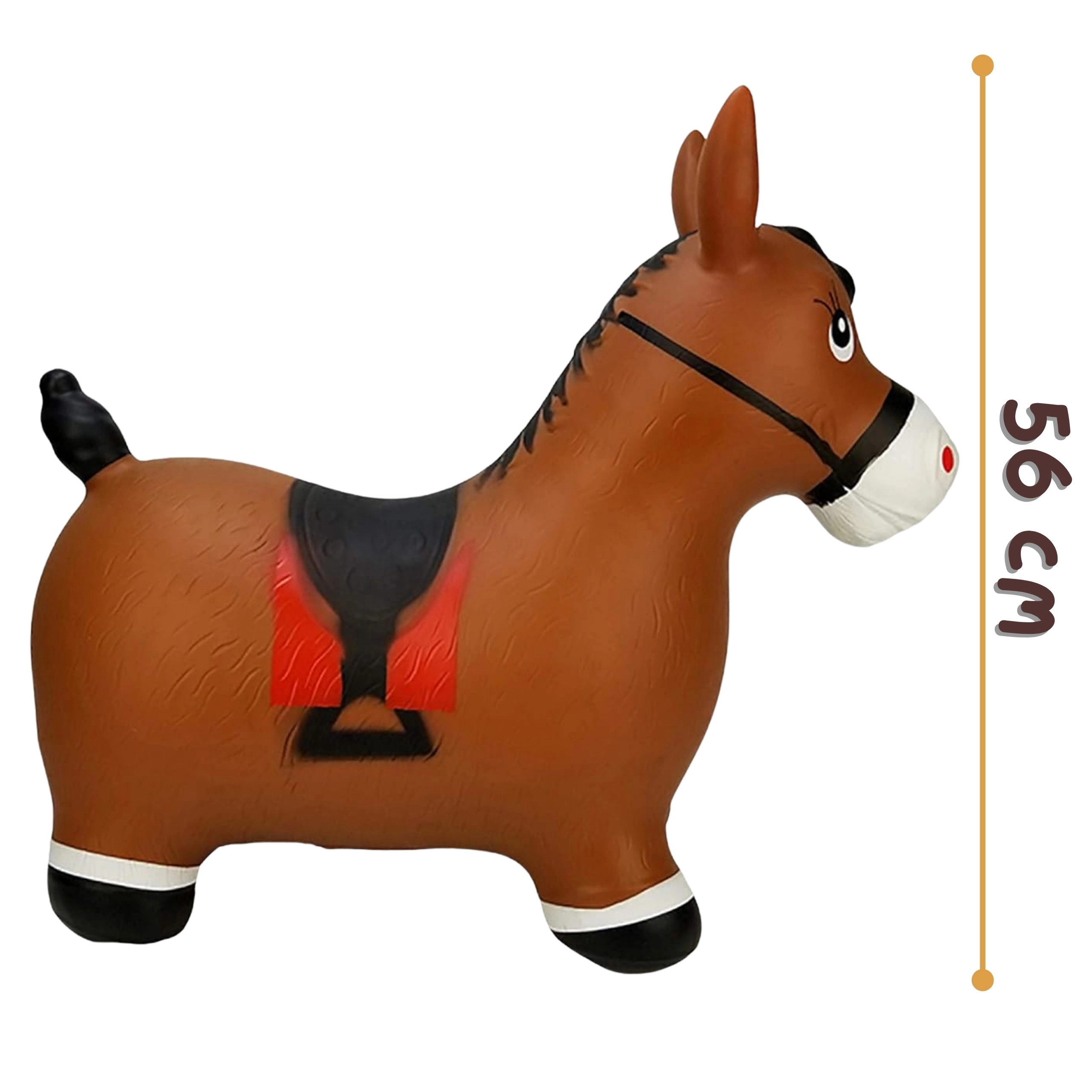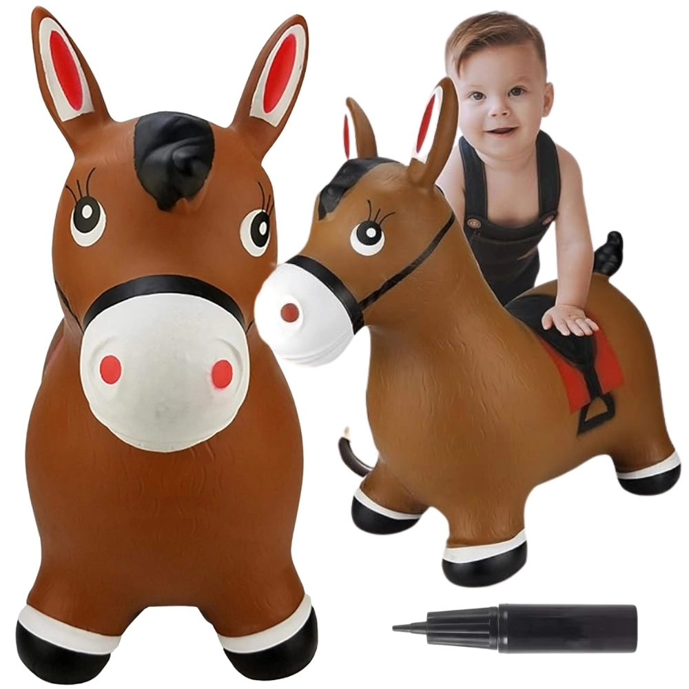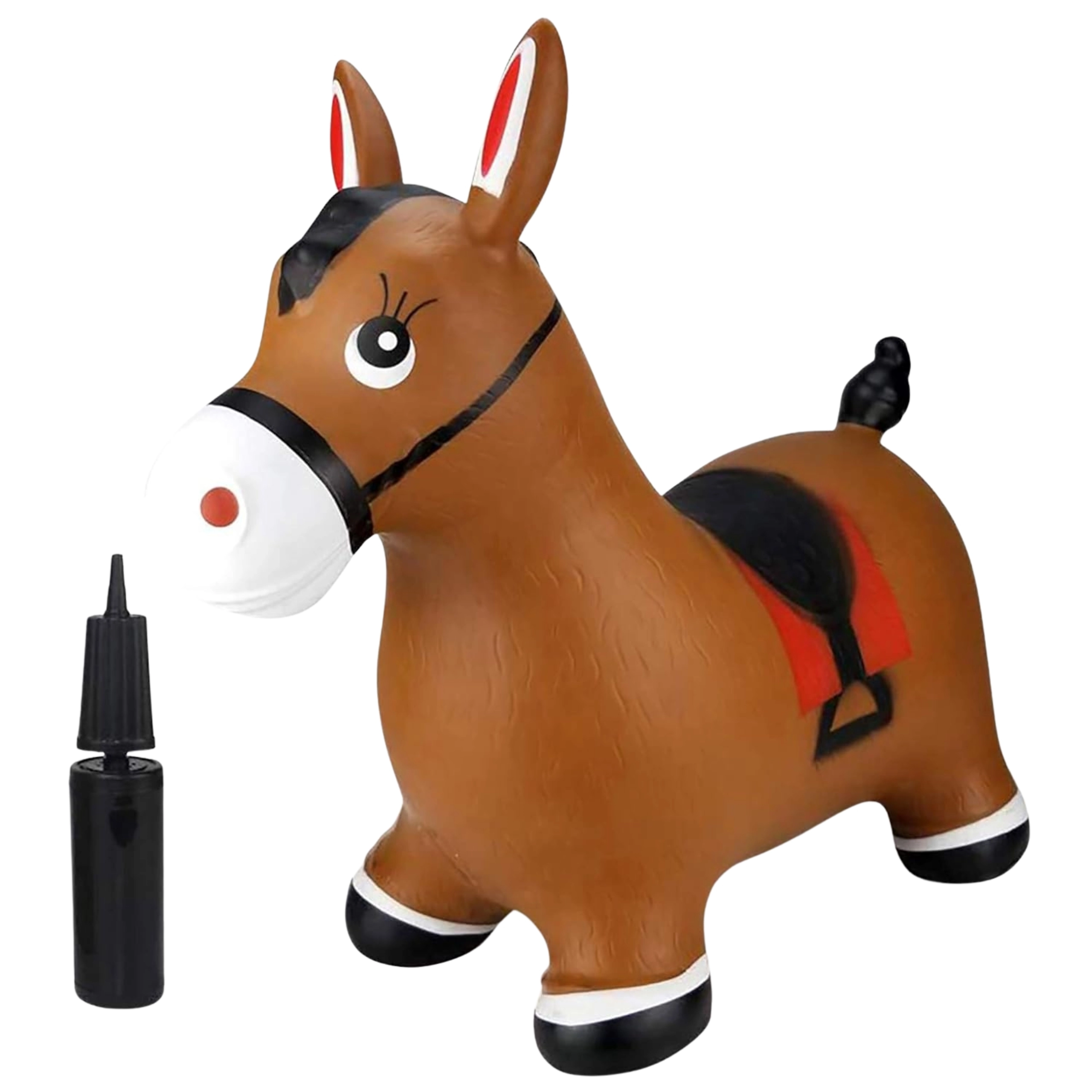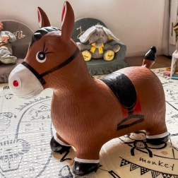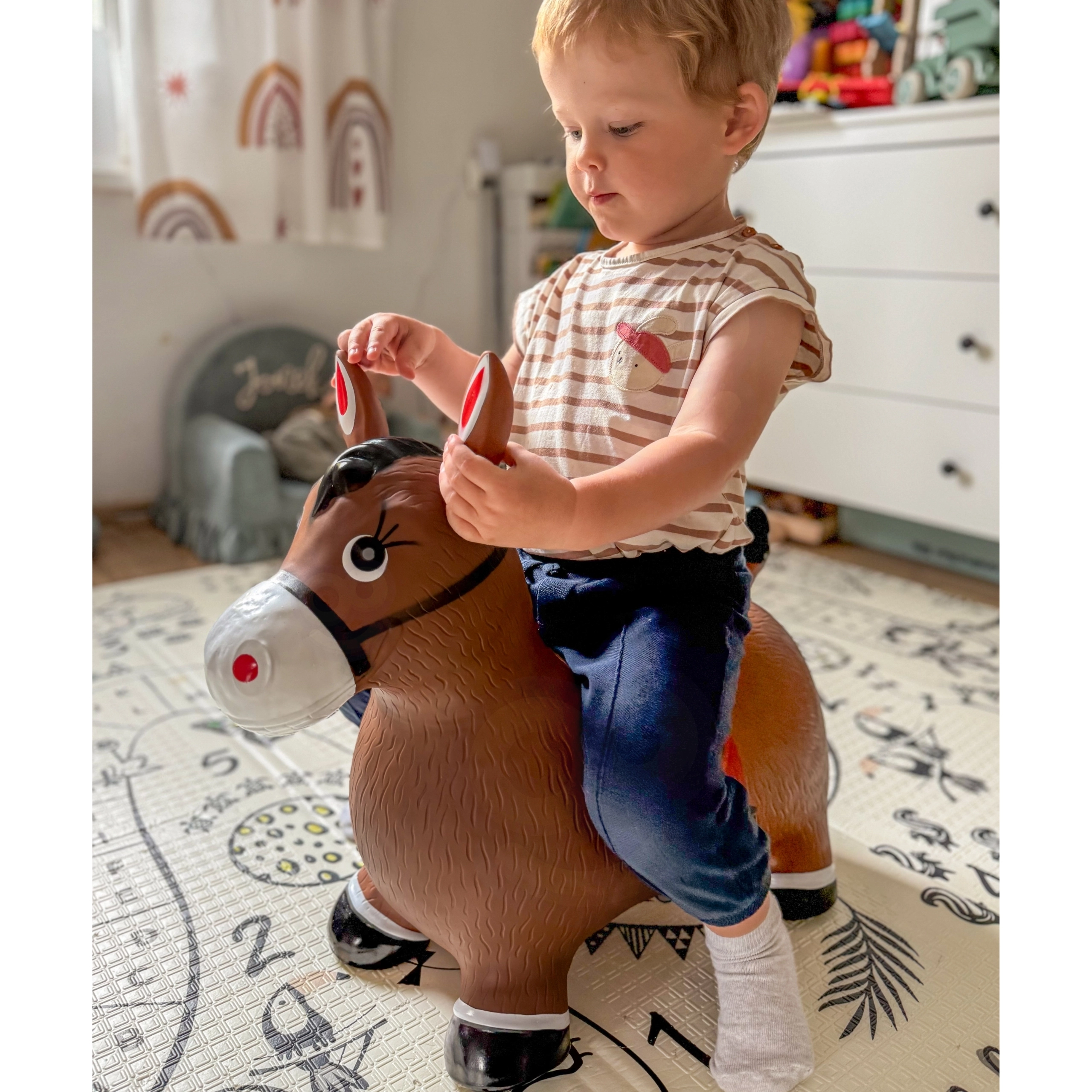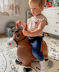 Ryškus mielo rudo arkliuko su balnu dizainas skatina žaisti ir ugdo vaizduotę. Didžiausia leistina apkrova 45 kg, o rekomenduojamas slėgis 0,3–0,4 baro užtikrina tinkamą elastingumą patogiam šokinėjimui. Pakuotėje rasite praktišką pompą, tad pramogos gali prasidėti iškart po išpakavimo.