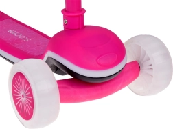 Šis triratis balansinis paspirtukas puikiai tinka pirmajam važiavimui gryname ore. Valdymas kūno pasvyrimu (lean-to-steer) padeda vaikams intuityviai lavinti koordinaciją ir pusiausvyrą, o plati, neslystanti pakojos platforma suteikia užtikrintumo kiekviename žingsnyje. Priekiniai ratukai, rėmas ir platforma turi LED apšvietimą, kurį galima perjungti tarp daugelio efektų, o dar daugiau pramogos suteikia įmontuotas muzikos modulis.