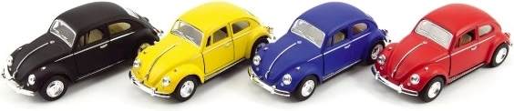 Stilingas ir tikroviškas legendinio automobilio VOLKSWAGEN Beetle modelis iš KINSMART pradžiugins tiek vaikus, tiek kolekcininkus. Dėl metalinio kėbulo ir atgalinio užvedimo paleistas automobiliukas greitai pajuda į priekį. Kompaktiškas 13 cm ilgis, 4 spalvų variantai ir kokybiškas metalo bei plastiko derinys. Tinka nuo 3 metų.