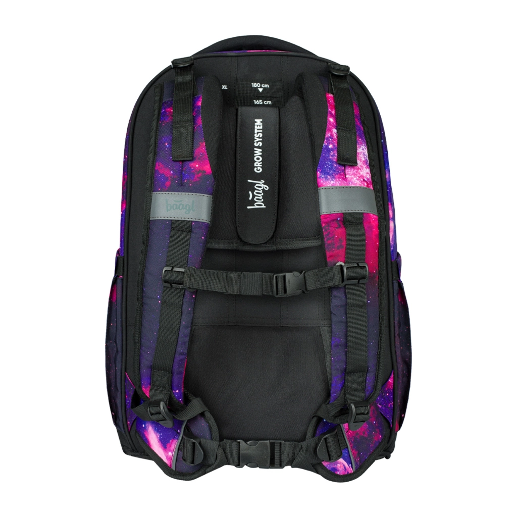 Kuprinė Skate Max Galaxy yra lengvas sprendimas, sveriantis vos 1150 g, su slankiojančia nugaros sistema, pritaikoma skirtingiems ūgiams. Idealu mokiniams nuo 155 iki 185 cm ūgio. Pagaminta iš perdirbtos, vandeniui atsparios medžiagos su atšvaitiniais elementais, turi nuimamą juosmens diržą. Kuprinė turi trijų skyrių organizatorių ir specialią nešiojamojo kompiuterio kišenę, papildytą kokybiškais YKK užtrauktukais ir stilingu pakabuku.