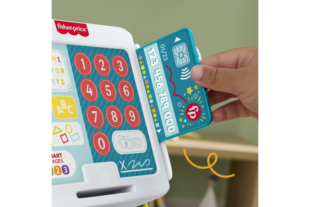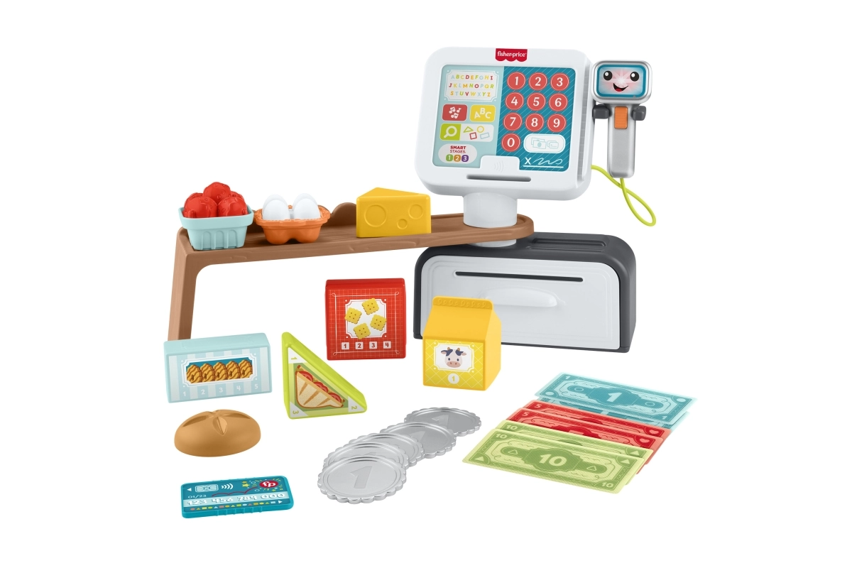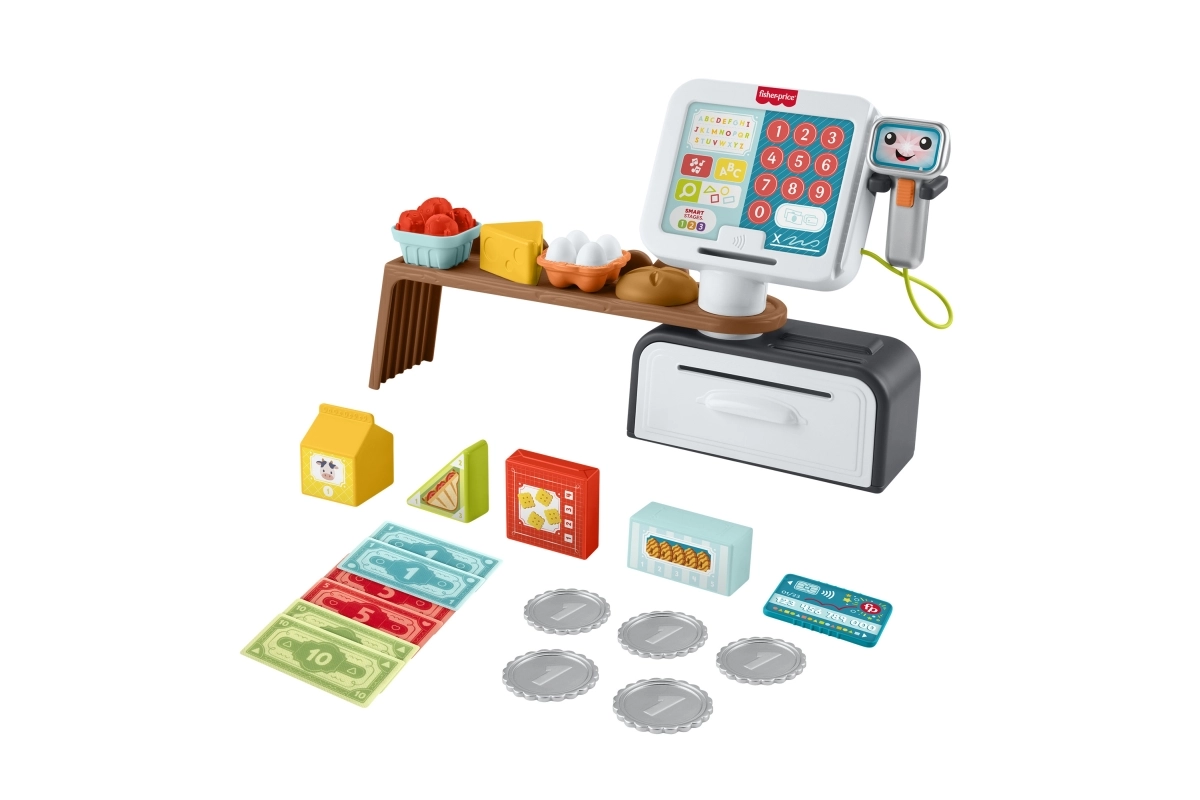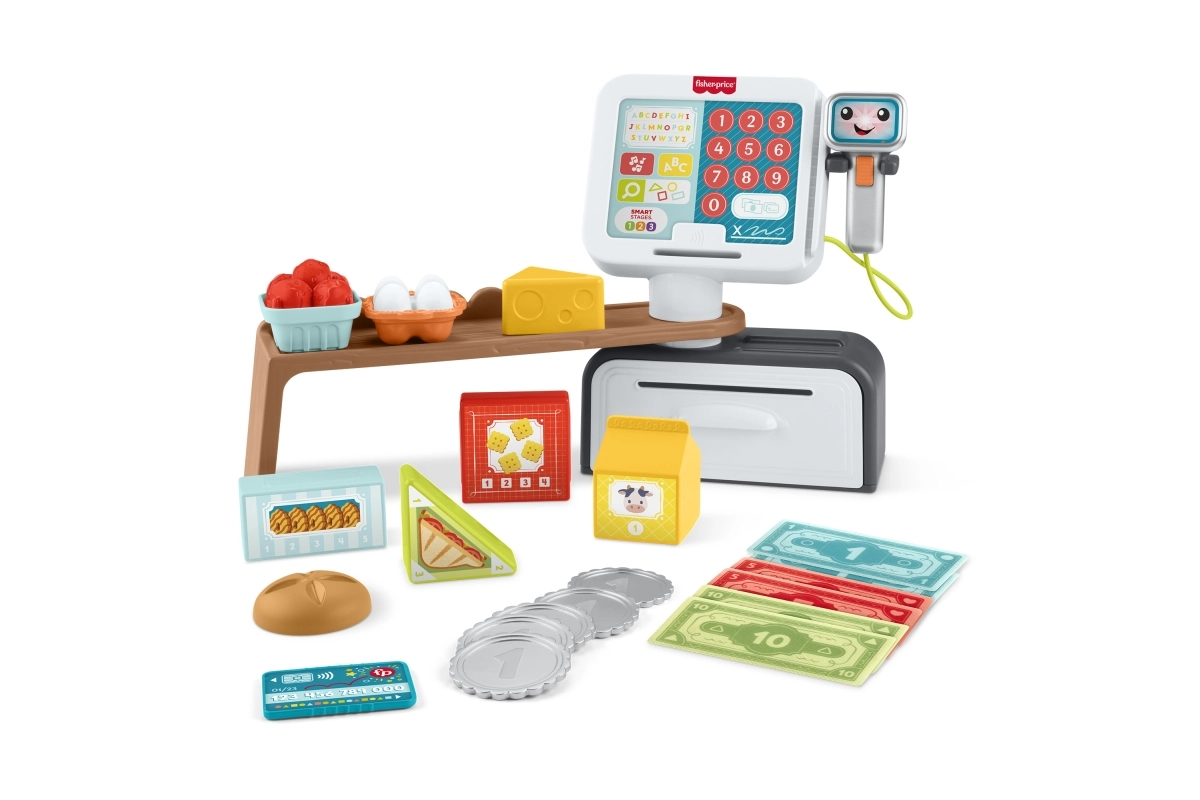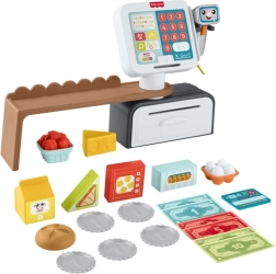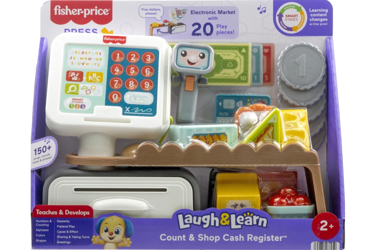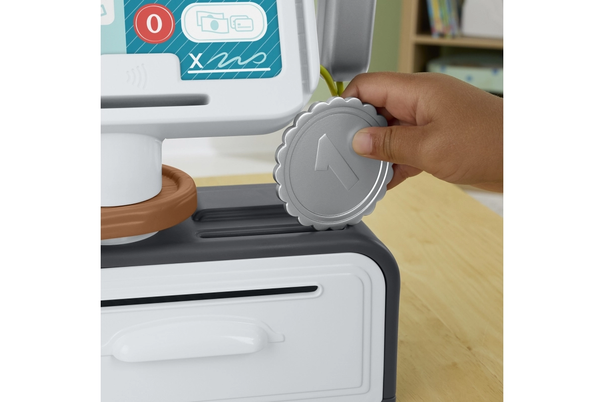 Kalbanti „Fisher‑Price“ kasa paverčia kiekvieną parduotuvės žaidimą smagiu mokymusi. Vaikai gali skenuoti produktus, spausti didelius spalvotus mygtukus, dėti banknotus ir monetas į stalčių ir mokėti kortele. Turtingas garso grįžtamasis ryšys su daugiau nei 150 garsų ir frazių skatina natūralų mokymąsi ir plečia žodyną.