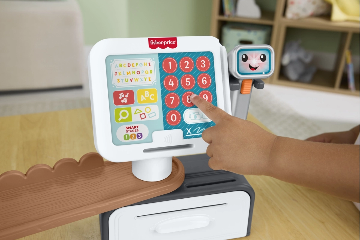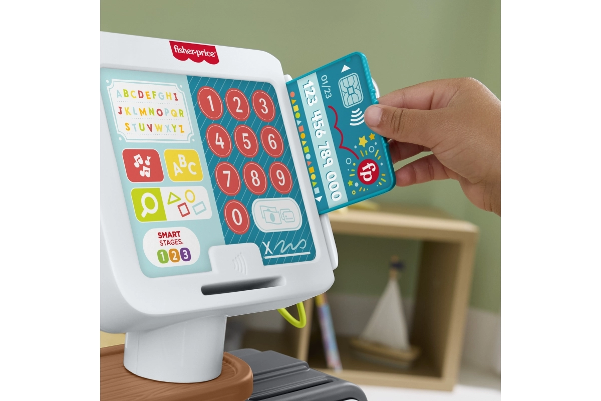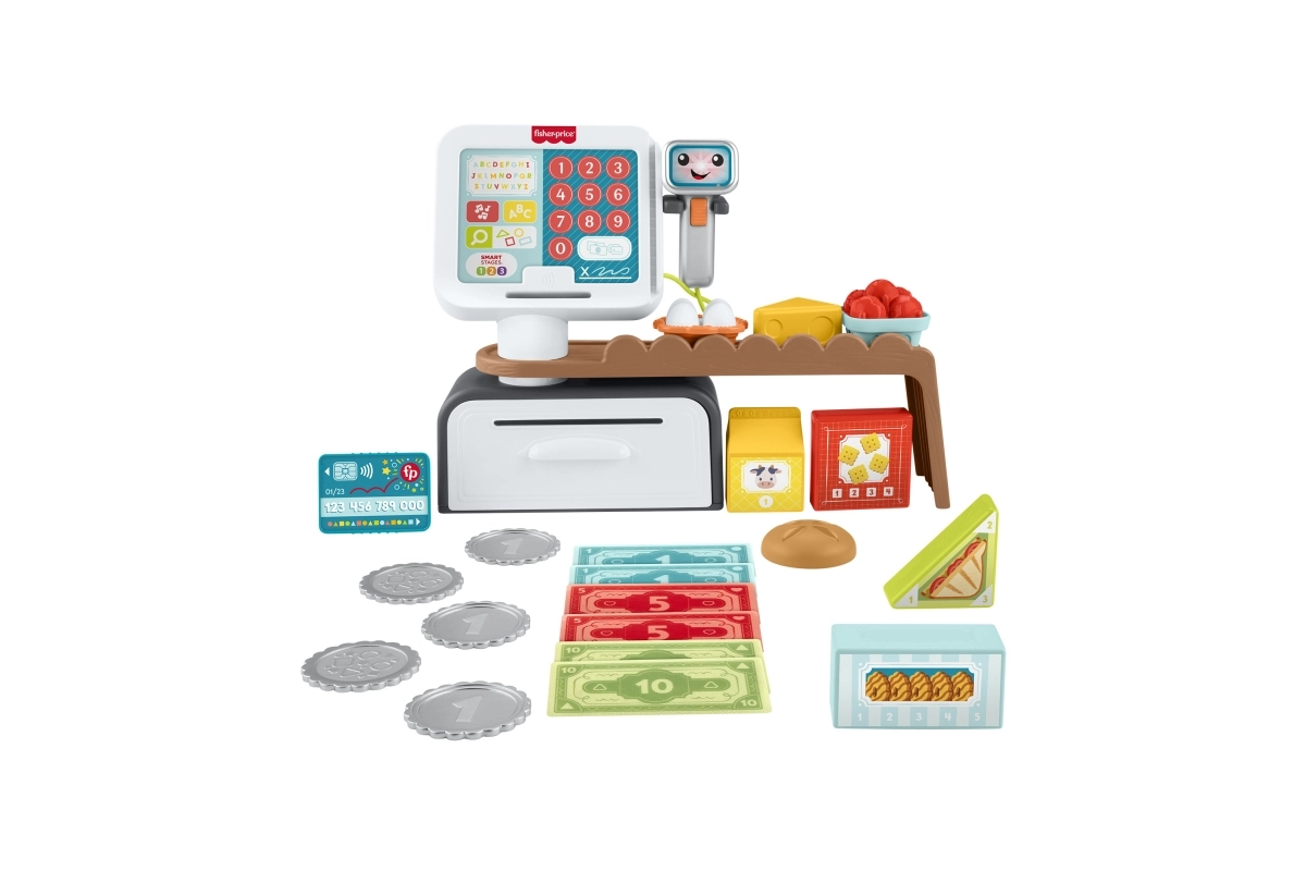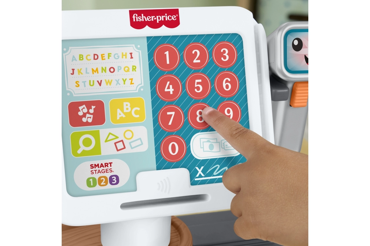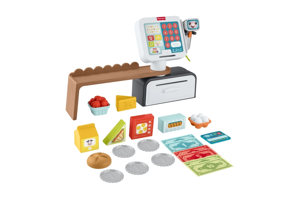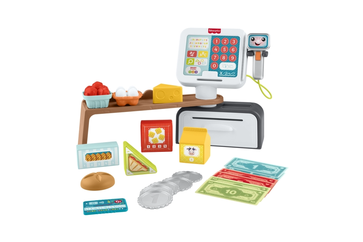 Kalbanti „Fisher‑Price“ kasa paverčia kiekvieną parduotuvės žaidimą smagiu mokymusi. Vaikai gali skenuoti produktus, spausti didelius spalvotus mygtukus, dėti banknotus ir monetas į stalčių ir mokėti kortele. Turtingas garso grįžtamasis ryšys su daugiau nei 150 garsų ir frazių skatina natūralų mokymąsi ir plečia žodyną.