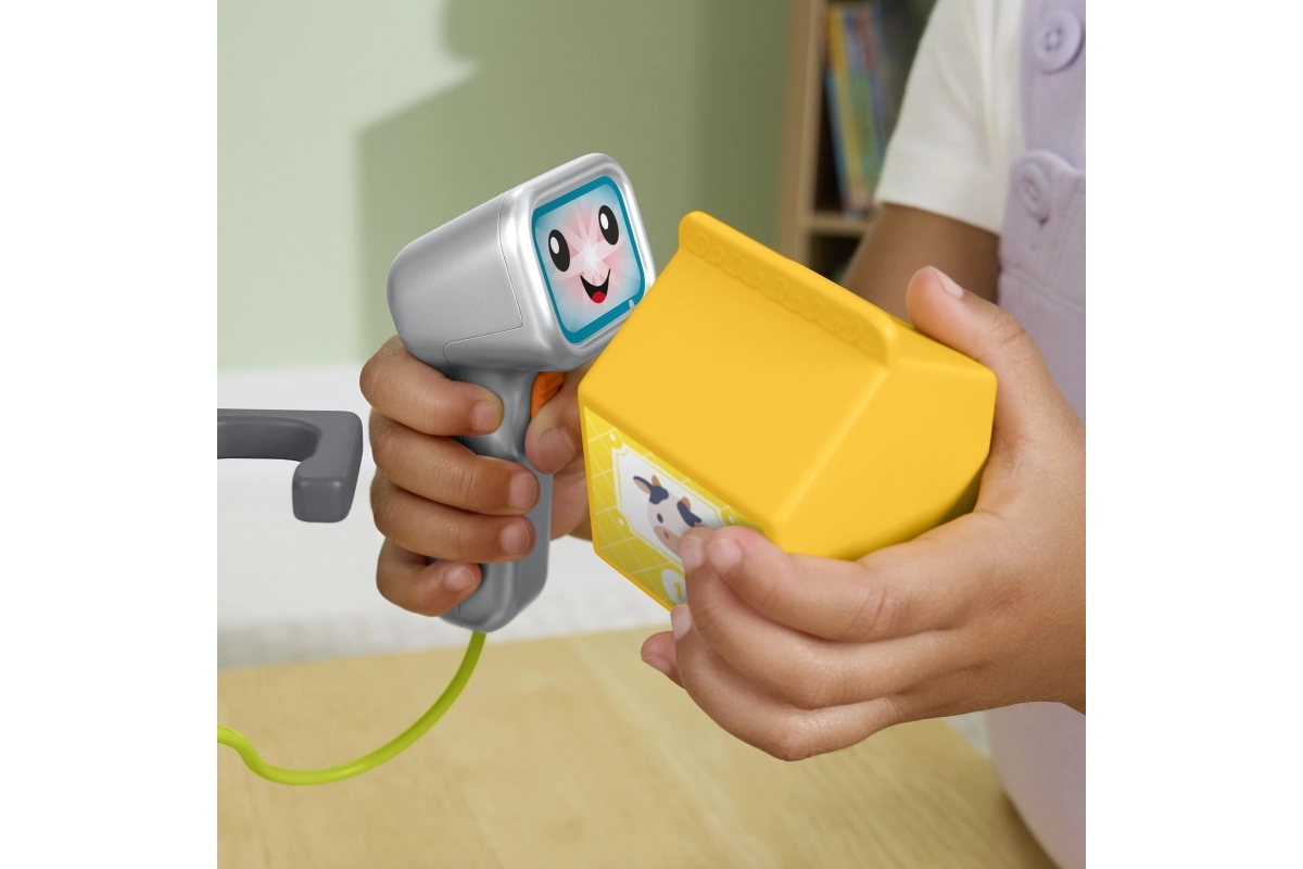 Vaikai skenuoja prekes šypsena pasitinkančiu rankiniu skeneriu, spaudo mygtukus ir ištraukia stalčių – kaip tikroje parduotuvėje. Skatina smulkiąją motoriką ir realistišką vaidmenų žaidimą.