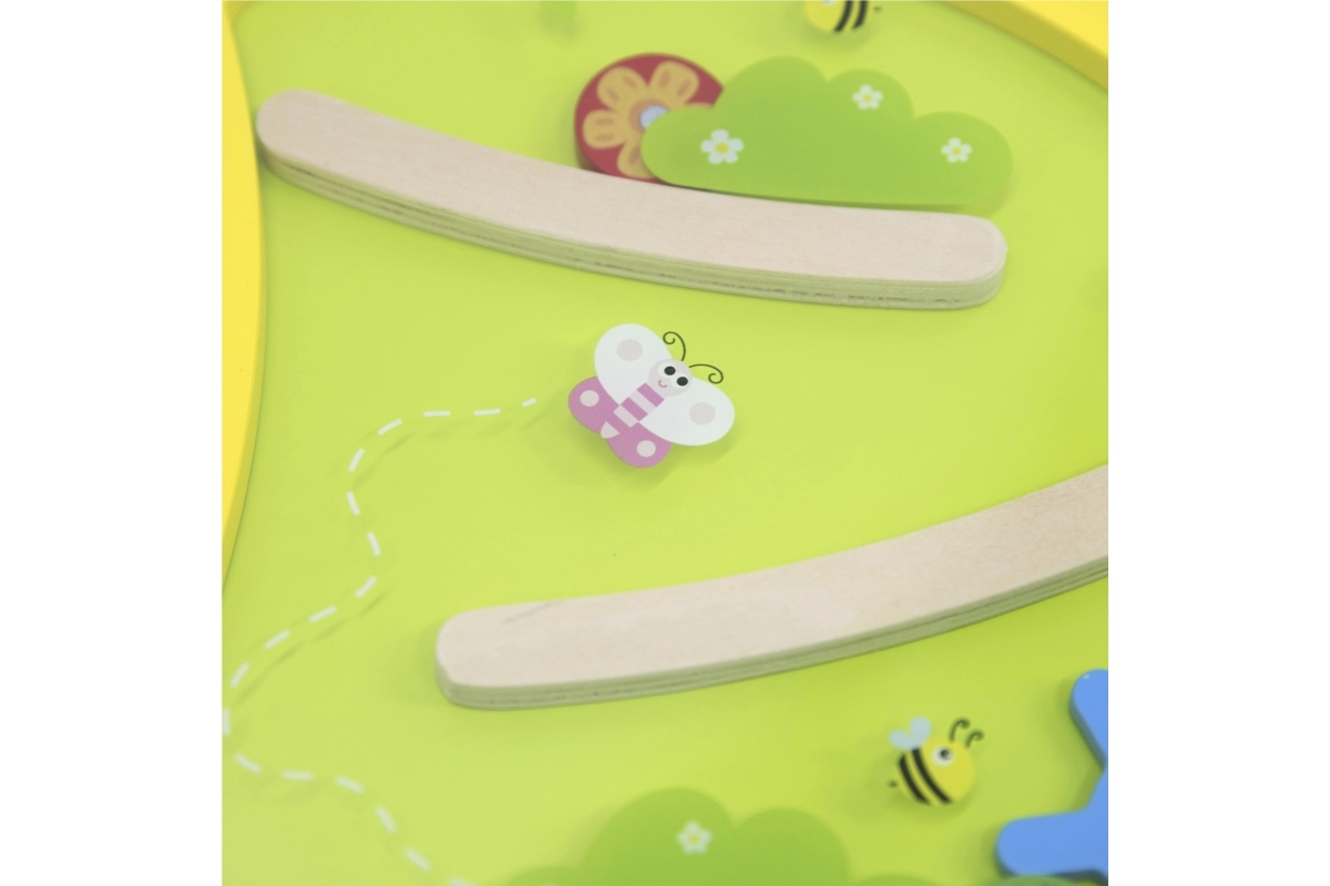 Linksmas ir saugus sieninis žaidimas patiems mažiausiems lavina smulkiąją motoriką, loginį mąstymą ir akių–rankos koordinaciją. Siūlo magnetinį labirintą, trasą–labirintą ir krumpliaračius viename žaismingame pulte. Idealiai tinka vaikų kambariams, darželiams ir žaidimų erdvėms.