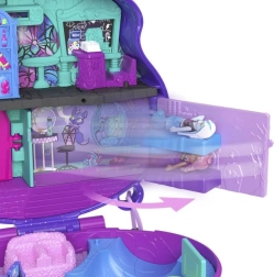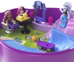 Atraskite mini formatu šiurpiai linksmus nuotykius su Polly Pocket x MONSTER HIGH kompaktu. Stilinga violetinė kaukolė su blizgančiu kaspinu, atidarius, virsta dviejų aukštų mokykla ir riedlenčių parku, kupinu žaidimo elementų, aksesuarų ir mini figūrėlių Draculaura, Clawdeen Wolf ir Frankie Stein – begalinėms istorijoms kelyje.