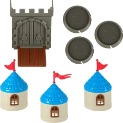 - Pilnas pilies statymo rinkinys su miniatiūromis (pamatai, bokštai, durys ir langai, stogas, vėliavos)