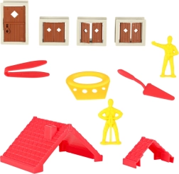 - Namelio statybiniai elementai – įskaitant pagrindus, stogą, duris ir langus.