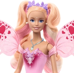Barbė fėja turi ilgus šviesiai rožinius plaukus, žvilgančią rožinę suknelę su vaivorykštės blizgesiu, nuimamus drugelio sparnus, lankelį, vėrinį ir puošnias basutes su vijoklinių lapelių motyvu. Lankstomos rankos ir detalūs aksesuarai skatina vaizduotę, istorijų pasakojimą ir stiliaus kūrimą.