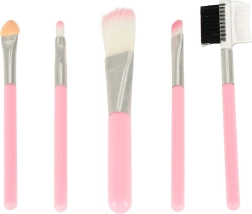 Penki skirtingi teptukai su rožinėmis rankenėlėmis ir metaliniais apvadais puikiai tinka efektyviam kosmetikos naudojimui.