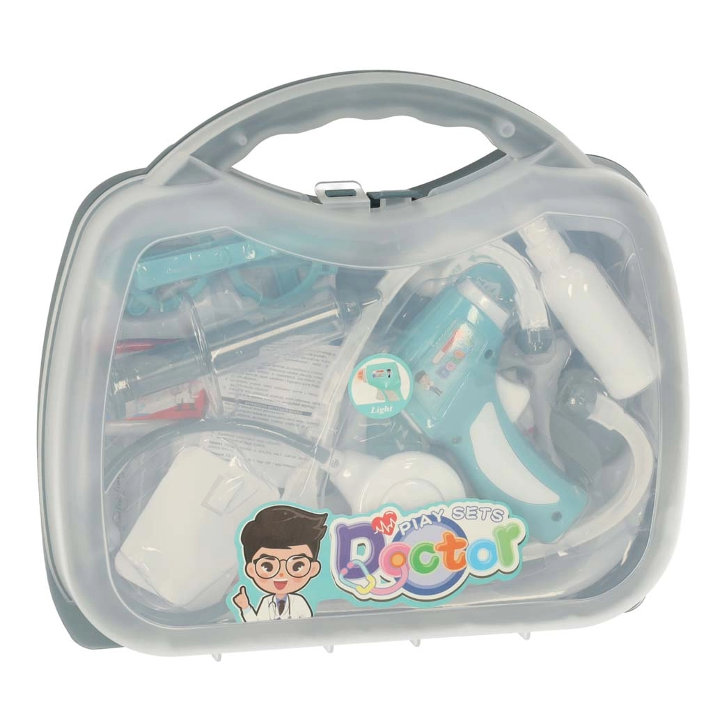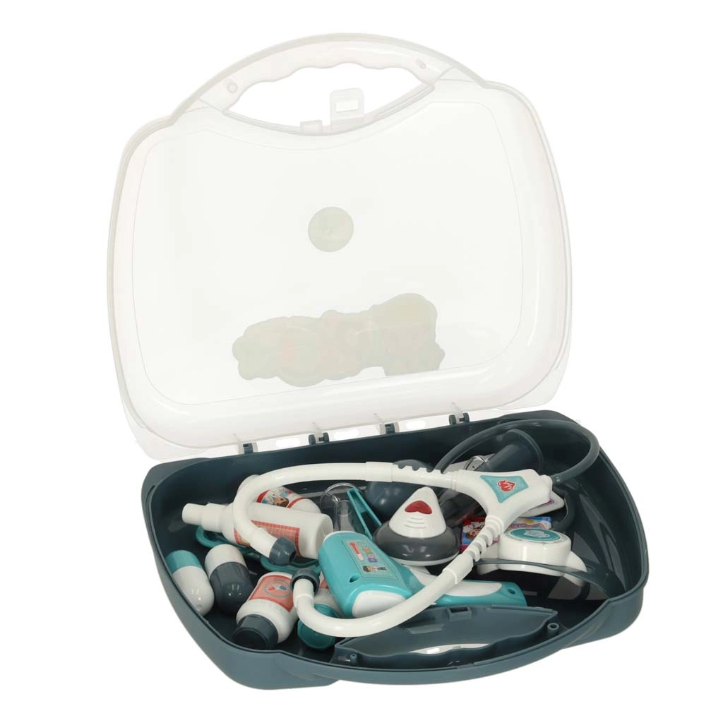 Gydytojo rinkinys lagaminėlyje vaikams, skatinantis kūrybišką gydytojo vaidmenų žaidimą. Sudėtyje – įvairūs medicininiai įrankiai, kurie šviečia ir skleidžia garsus, suteikdami žaidimui realistiškumo.