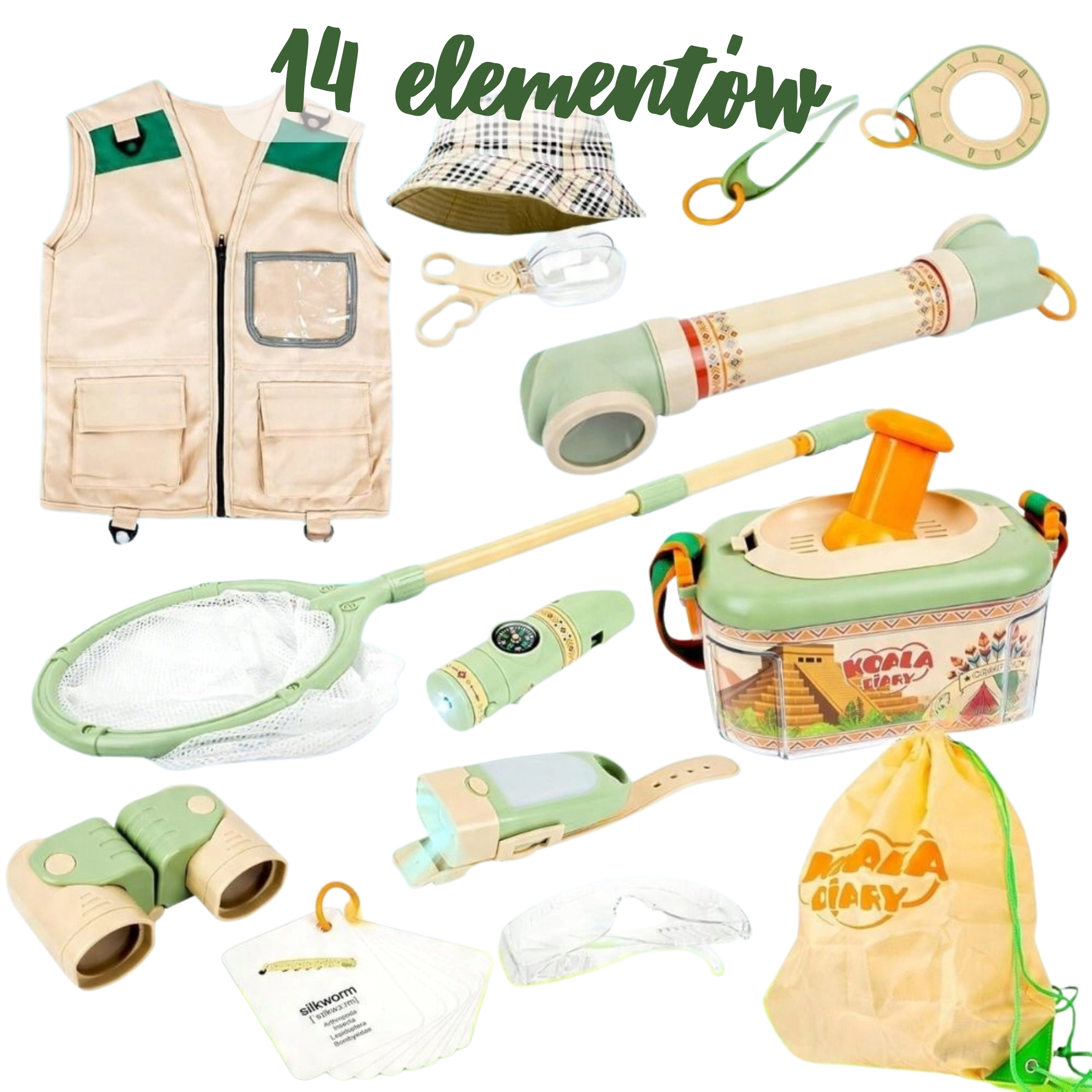 Pasiruoškite nepamirštamam nuotykiui su Mažojo Tyrinėtojo rinkiniu iš Woopie! Šis išsamus įrangos komplektas yra puiki dovana visiems smalsiems jauniems tyrinėtojams, trokštantiems pažinti gamtą sode, miške ar net savo kieme.