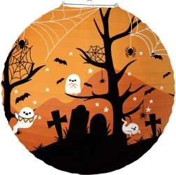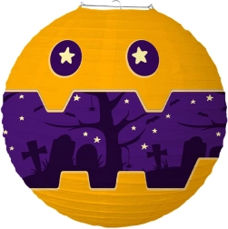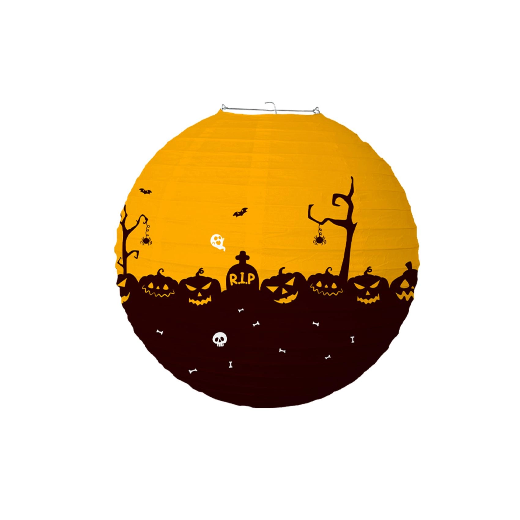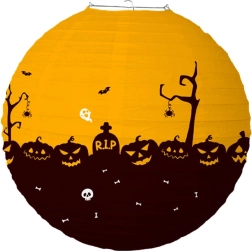 Suteikite savo Helovino dekoracijoms tinkamą nuotaiką su apvaliu popieriniu žibintu, kurio skersmuo 30 cm. Dėl lengvos konstrukcijos, paprasto pakabinimo ir šiurpulingų motyvų, tokių kaip moliūgai, vaiduokliai, šikšnosparniai ir kapinės, jis akimirksniu sukuria įspūdingą ambientinį apšvietimą vakarėliui ar langams.