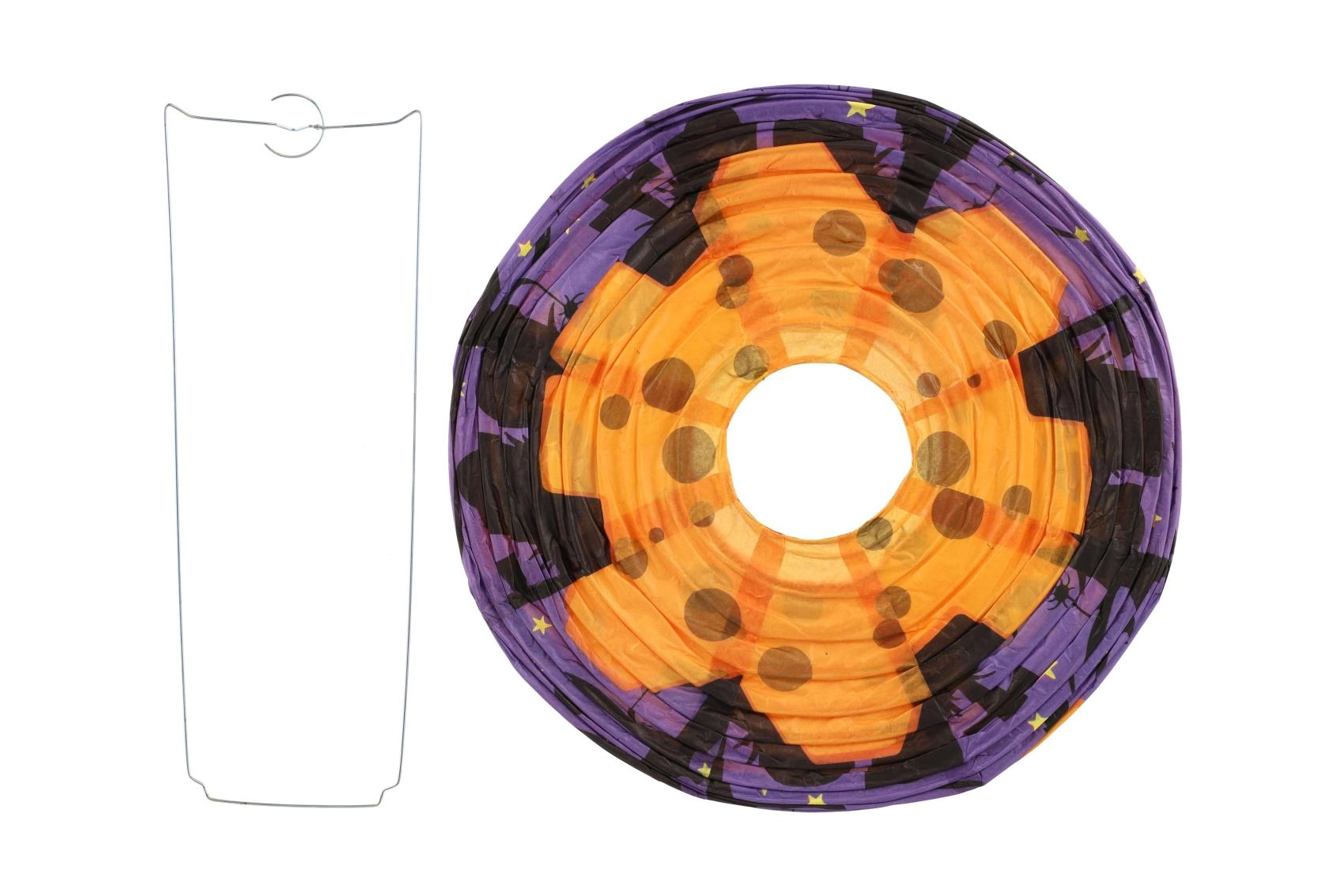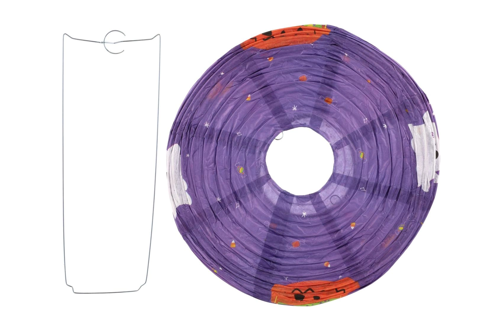 Šis dekoratyvinis žibintas idealiai tinka helovino vakarėliams, vaikų kambario, sodo ar vitrinų puošybai. Apvali forma, ryškūs oranžiniai ir violetiniai tonai bei su Helovinu siejami motyvai suteikia akimirksnį efektą. Dėl metalinio kabliuko ir vidinio rėmelio jis lengvai surenkamas ir pakabinamas.