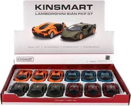 Atraskite šio metalinio Lamborghini Sián FKP 37 modelio grožį – tai ikoniško sportinio automobilio sumažintas atitikmuo 1:40 masteliu. Modelis gali būti prieinamas keturių spalvų, kas didina jo kolekcinę vertę. Durys visiškai atidaromos, skatinant interaktyvų žaidimą. Atbulinė įkrova leidžia modeliui važiuoti jūsų stalu ar grindimis, užtikrindama valandas pramogų vaikams ir suaugusiesiems.