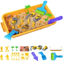 Šis kūrybinis statybų rinkinys su kinetiniu smėliu suteikia tikrovišką statybų tematikos pramogą. Nešiojama padėklo bazė su paaukštintais kraštais laiko smėlį vienoje vietoje, o mini ekskavatoriai, savivarčiai, volai, figūrėlės ir kelio ženklai padeda vaikams kurti savo statybvietę. Kinetinis smėlis nelimpa prie rankų ar grindų ir yra netoksiškas.