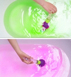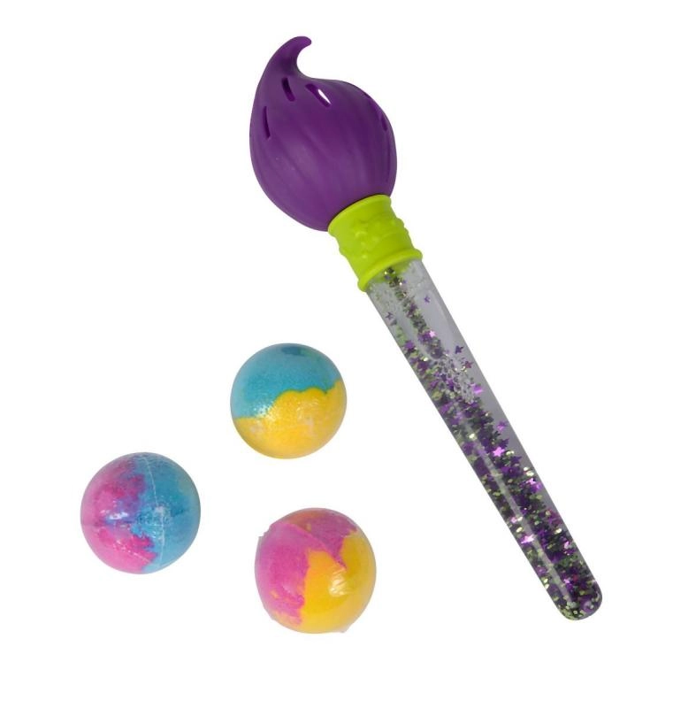 - 1x stebuklingas teptukas, 3x vandens šnypščiančios spalvotos bombos