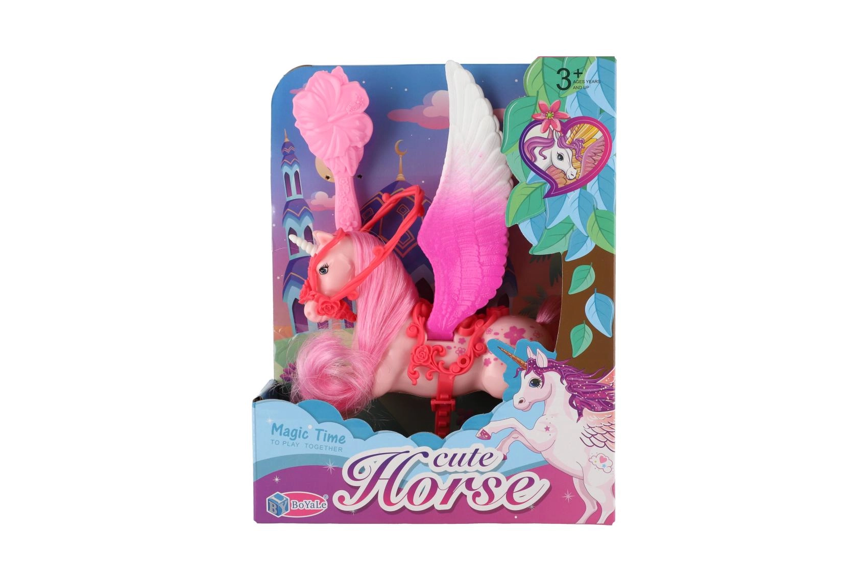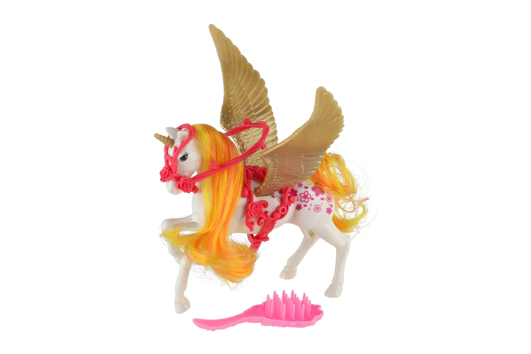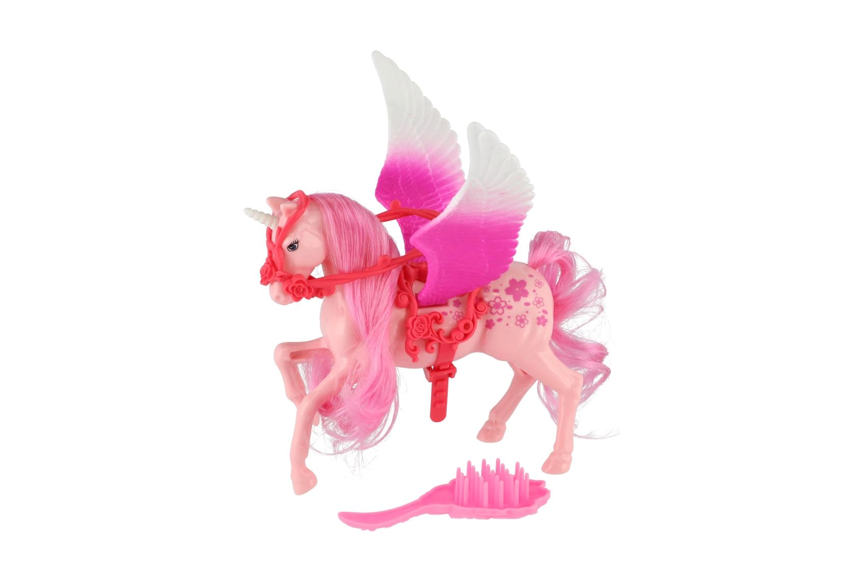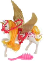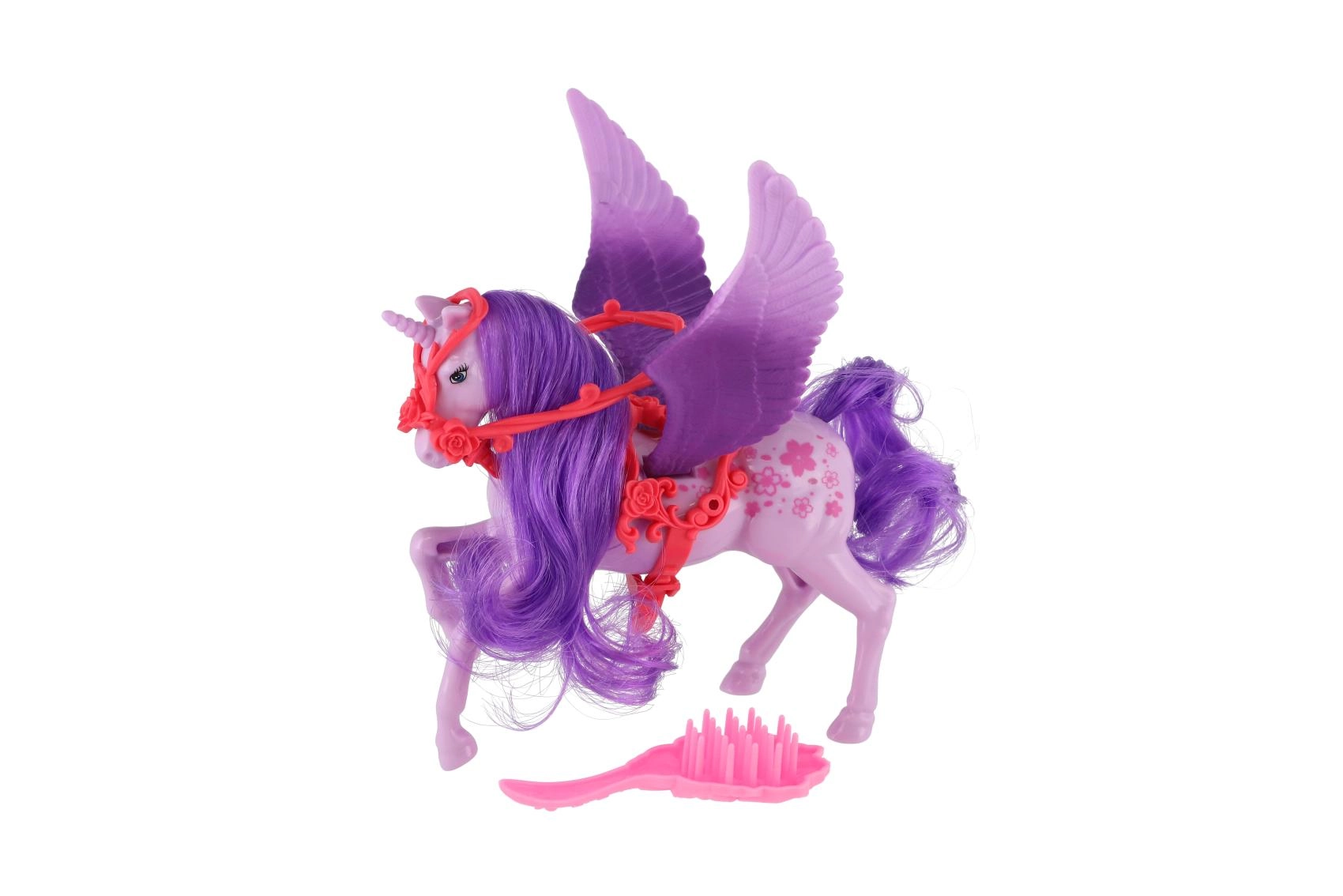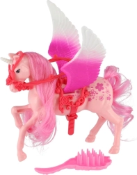 Šis mielas vienaragis su sparnais turi ilgą karčius ir uodegą, kuriuos vaikai gali šukuoti ir kurti šukuosenas pagal savo fantaziją. Dėka pridedamų šukų karčių priežiūra yra lengva ir smagi. Žaislas lavina smulkiąją motoriką, kūrybiškumą ir skatina vaidybinius siužetus.