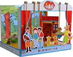 Rinkinys pagamintas iš kokybiško knygrišystės kartono, medžio ir laminuoto kartono, todėl yra patvarus ir ilgaamžis. Idealiai tinka mažesniems vaikams, kurie tik mokosi teatro meno, ir visai šeimai pramogauti.