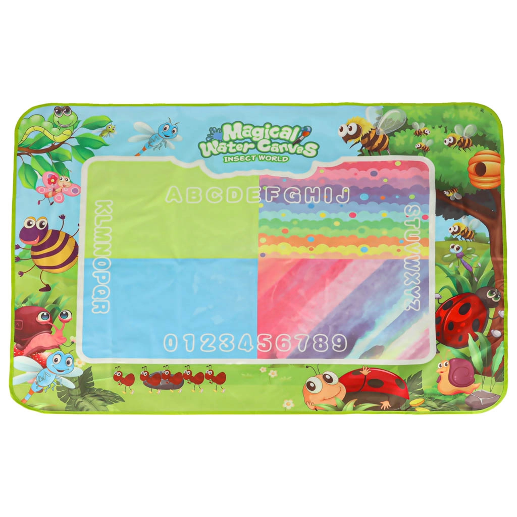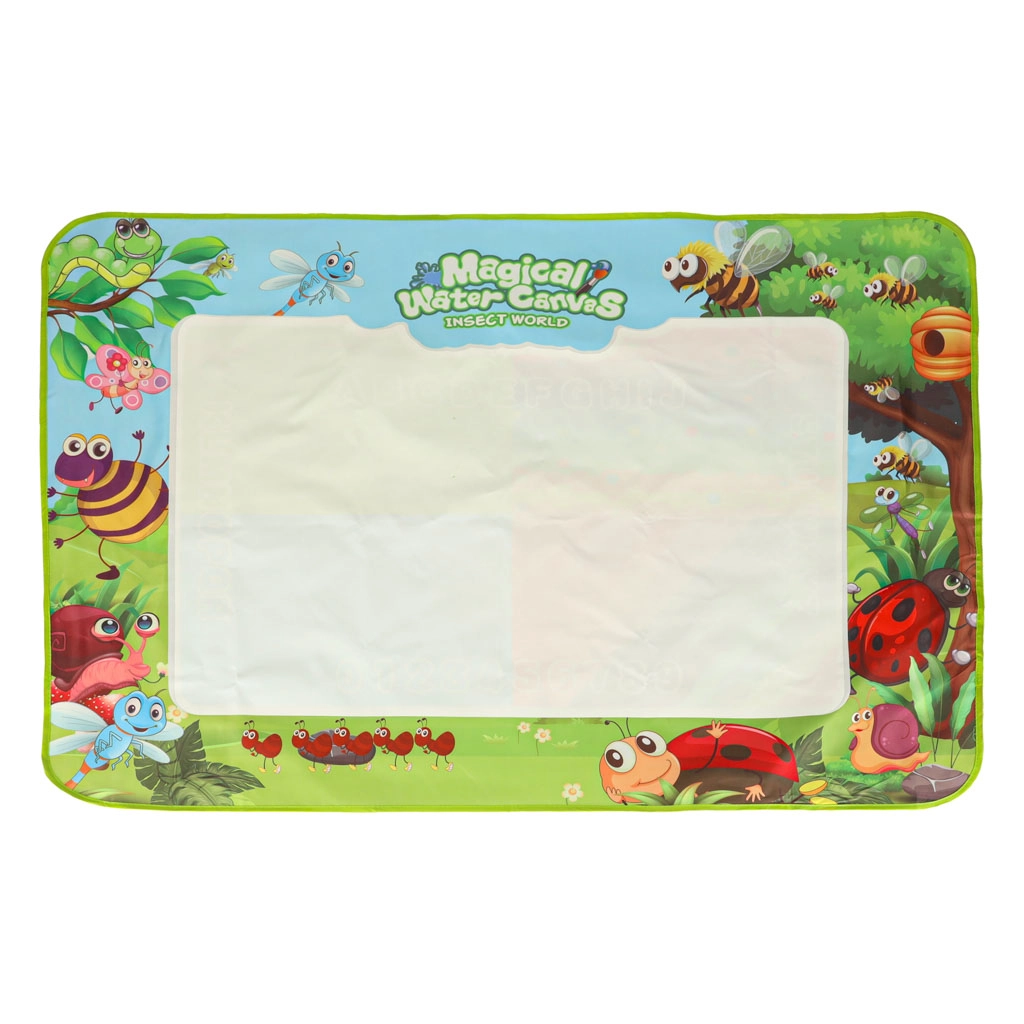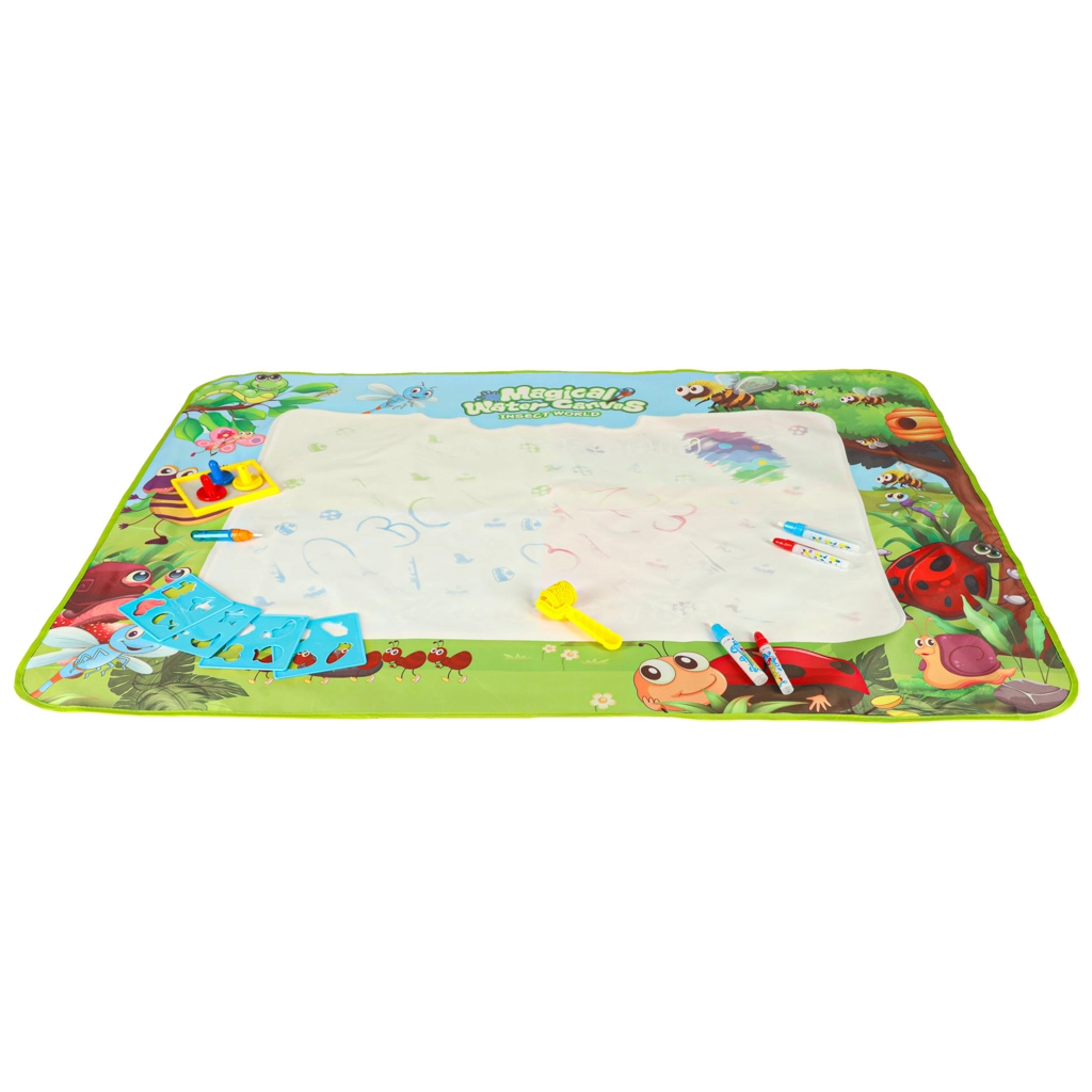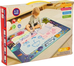 Linksmas vandens piešimo kilimėlis mažiesiems menininkams. Rinkinyje yra viskas, ko reikia kūrybiškam žaidimui be netvarkos, įskaitant vandens markerius, antspaudus ir trafaretus.