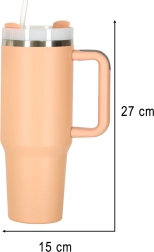 Atsparus dizainas iš nerūdijančio plieno ir plastiko užtikrina ilgą tarnavimo laiką ir atsparumą pažeidimams. Rankenėlė suteikia saugų nešiojimą, o rinkinyje esantis šiaudelis leidžia patogiai gerti nenukeliant dangtelio. Ideali dovana kelionių entuziastams ir taupiems vartotojams.