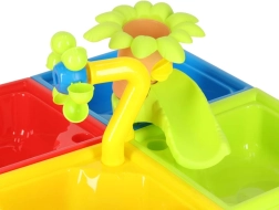 Išplėstas vandens parkas su karusele ir čiuožykla leidžia vaikams stebėti vandens judėjimą ir praktiškai atrasti pagrindinius fizikos dėsnius. Tai ne tik puikus smagumas, bet ir mokomasis vandens ciklas, lavinantis kūrybinį ir loginį mąstymą.