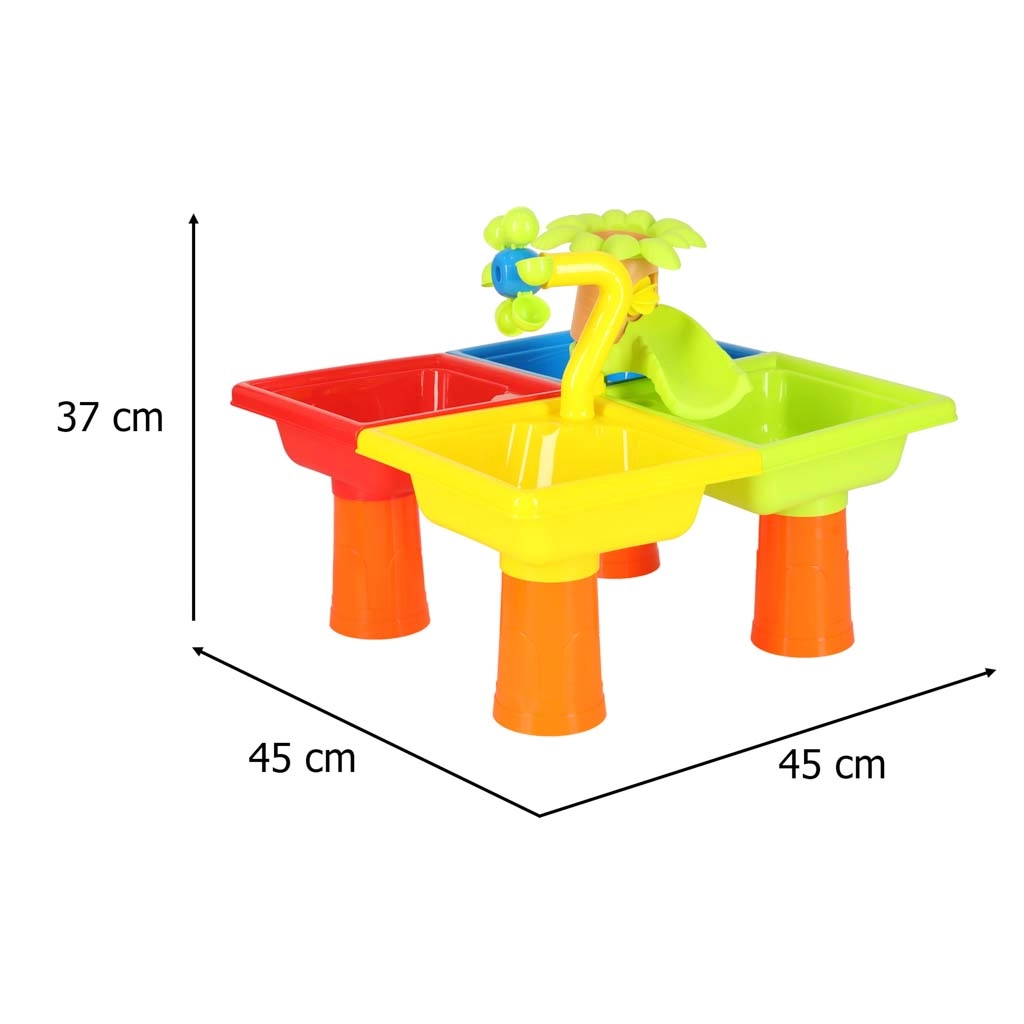 Vandens stalas ir smėlio dėžė viename – puikus pasirinkimas sodui, terasai ar balkonui. Stalas su atskiromis dalimis leidžia vaikams žaisti tiek su vandeniu, tiek su smėliu. Vaikai gali kurti savo vandens uostą ir įveikti nuobodulį, pavyzdžiui, net ir paplūdimyje.