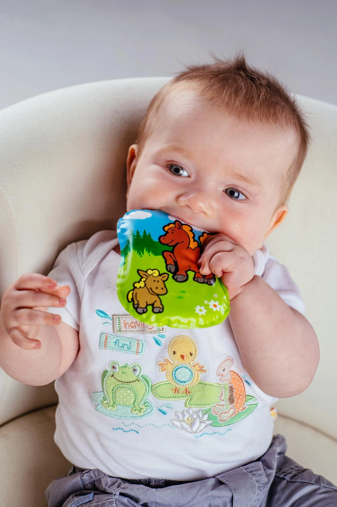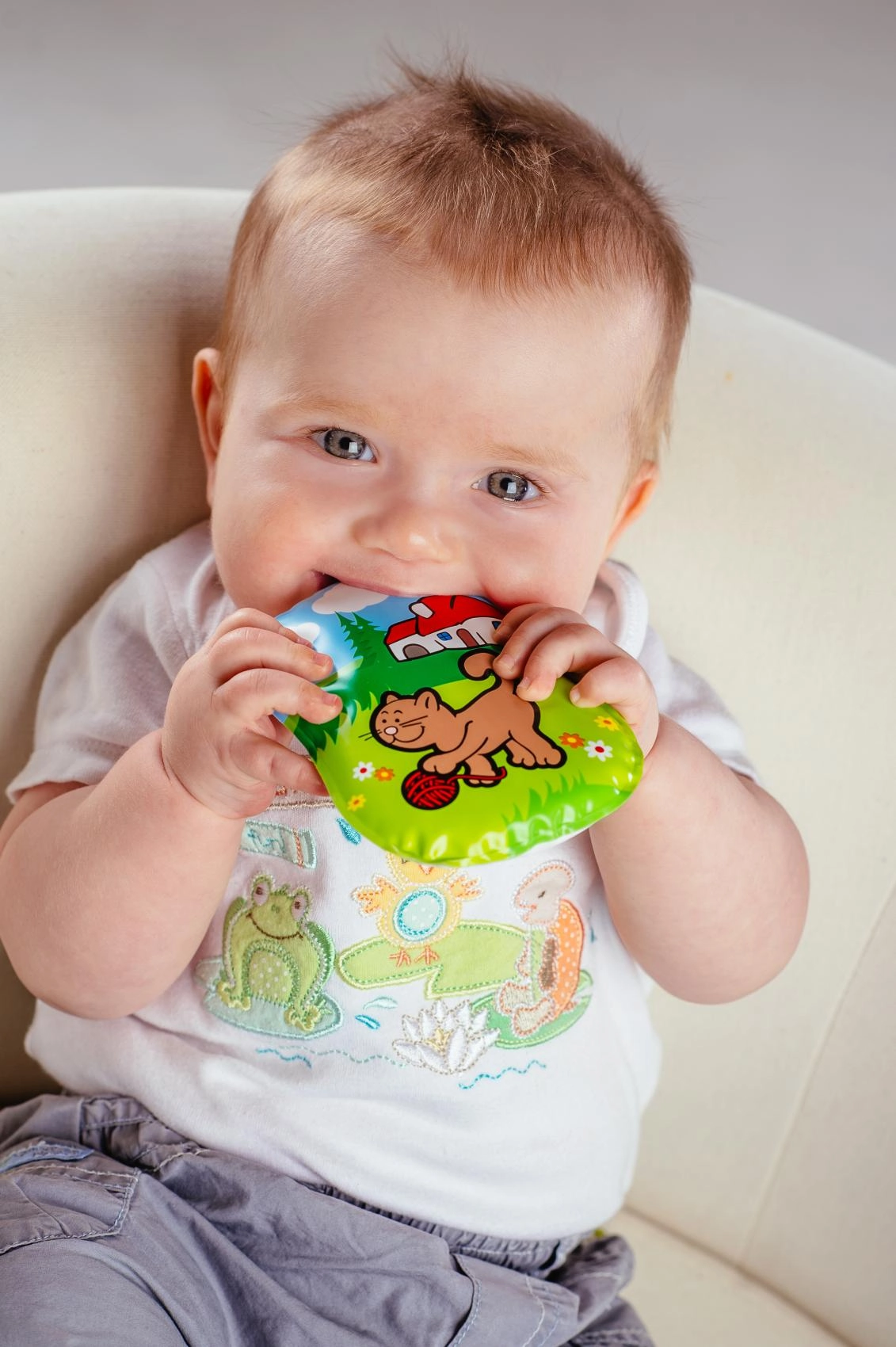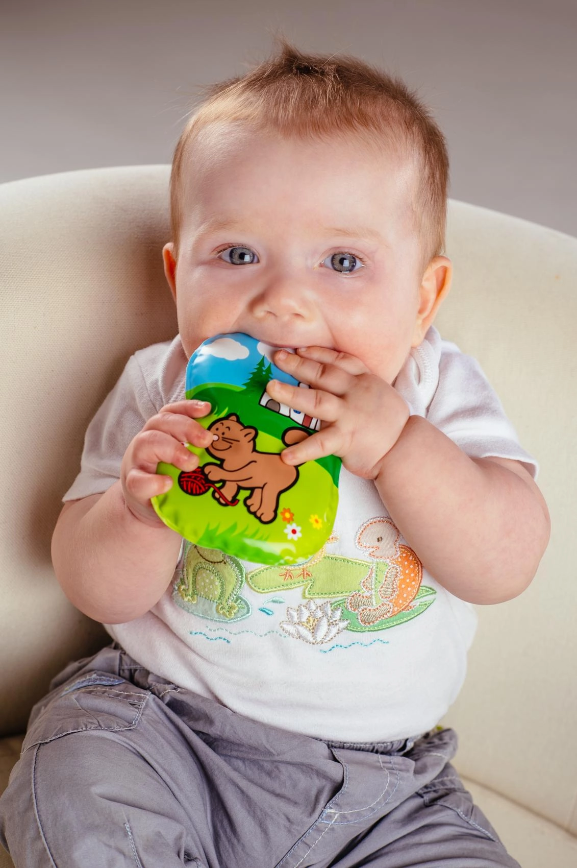 Pagalvėlė pagaminta iš saugių, be ftalatų medžiagų ir yra sertifikuota naudoti nuo gimimo. Galima rinktis iš kelių mielų gyvūnėlių motyvų, kurie skatina vizualinę stimuliaciją ir pirmąjį pažinimą.