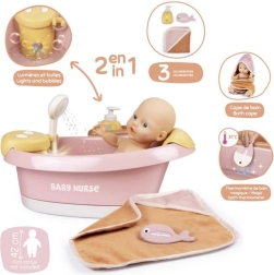 Mėgaukitės realistišku lėlių maudymu su Smoby Baby Nurse vonelėmis, kurios aprūpintos elektroniniu dušu ir burbuliukų funkcija su šviesa. Tereikia paspausti mygtuką ir vanduo pradės tekėti iš automatinės dušo galvutės, suteikdamas pramogą ir tikros vonios pojūtį.