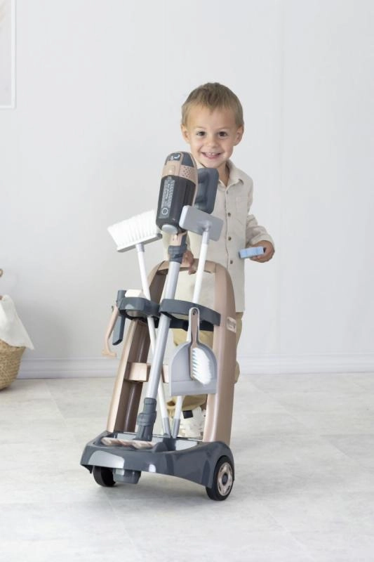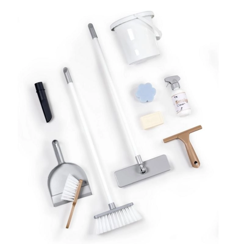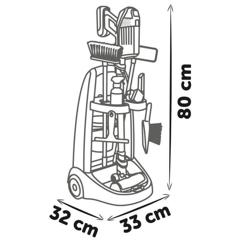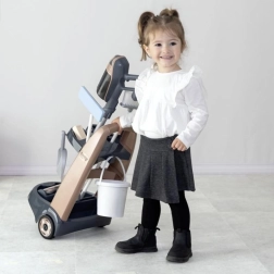 Šis valymo vežimėlis idealiai tinka vaikams, kurie nori padėti namuose. Priedai apima: