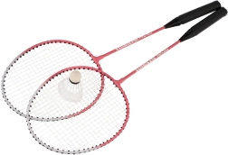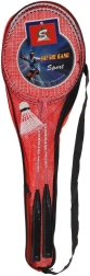 Lengvas ir praktiškas badmintono rinkinys laisvalaikio žaidimams sode, paplūdimyje ar atostogų metu. Sudėtyje yra 2 raketės, 64 cm ilgio ir 1 kamuoliukas užsegamame dėkle su dirželiu, kad būtų patogu nešti. Metalinė rėmo konstrukcija ir patogios rankenos užtikrina tvirtą sukibimą ir lengvą valdymą. Tinka paaugliams ir suaugusiesiems nuo 14 metų.