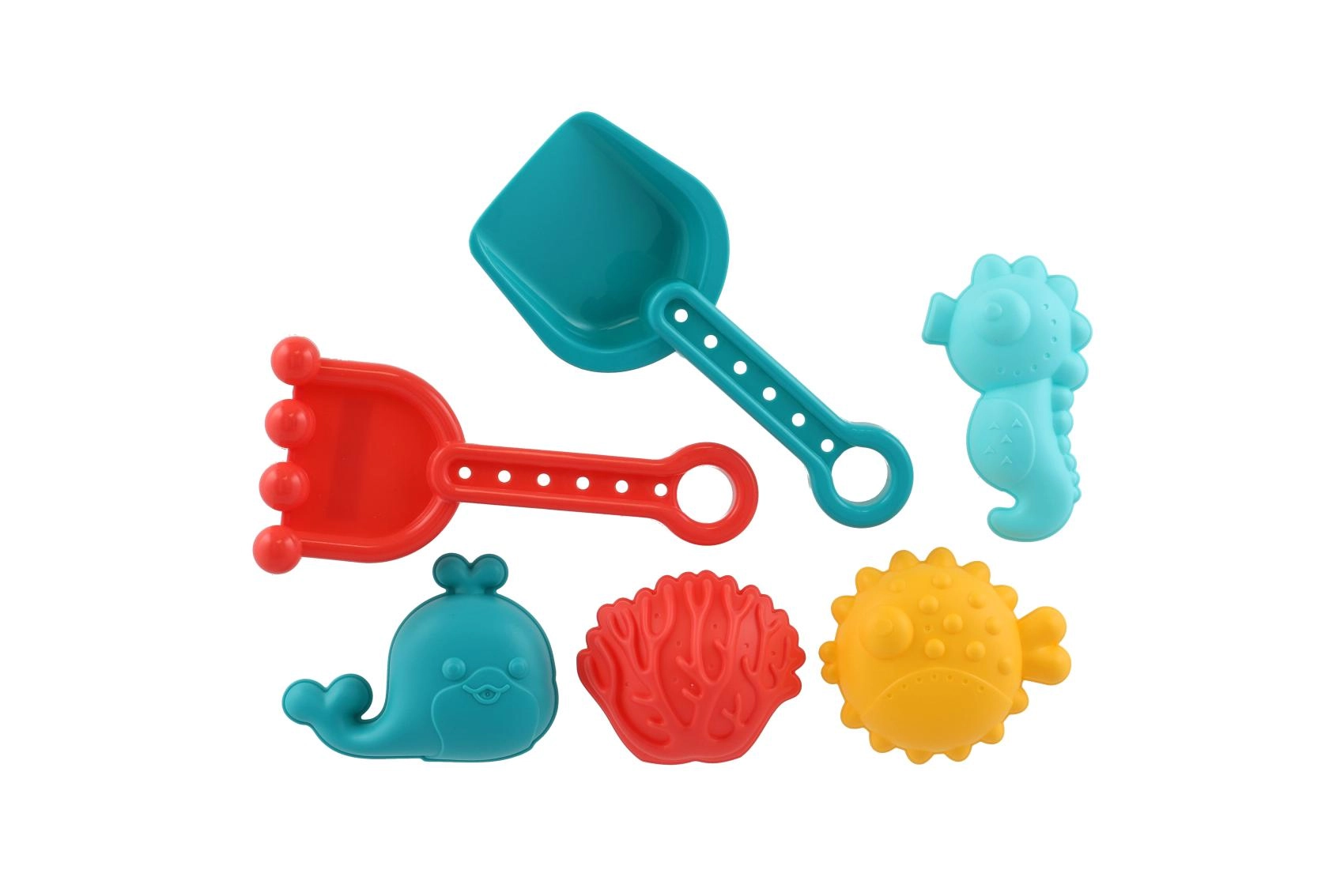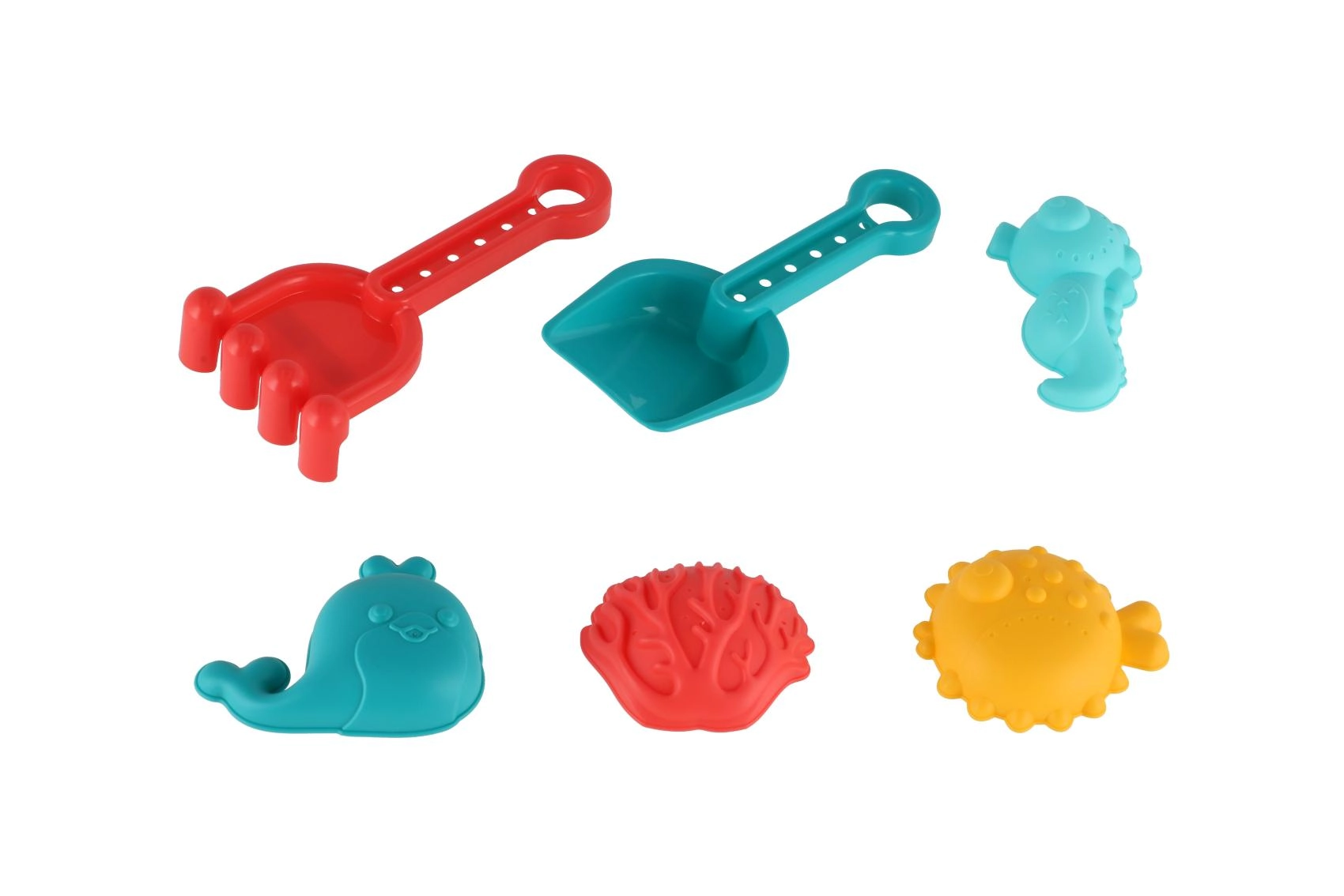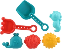 Pakuotėje rasite viską, ko vaikams reikia kūrybai: kastuvėlį semti, grėbliuką lyginti ir formuoti bei spalvingas formeles smagioms formoms. Rinkinį galima naudoti smėlio dėžėje, paplūdimyje ir net vonioje.