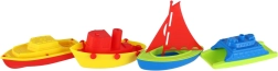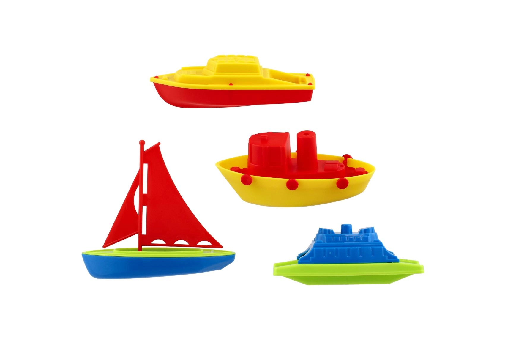 Ši praktiška rinktinė sudaryta iš keturių plastikinių laivelių skirtingų formų ir spalvų, įskaitant burlaivį ir motorinius katerius. Laiveliai lengvi, patvarūs ir patogūs mažoms vaiko rankoms. Dėl plūduriuojančios konstrukcijos puikiai tinka tiek voniai, tiek vaikiškam baseinėliui.