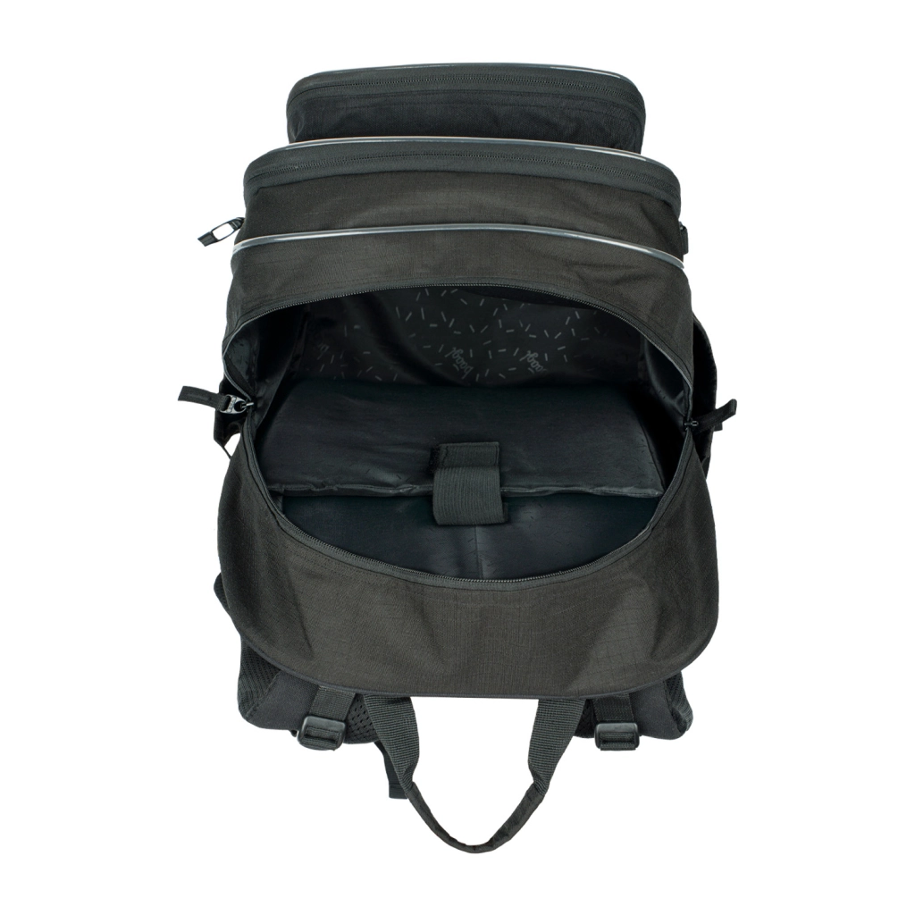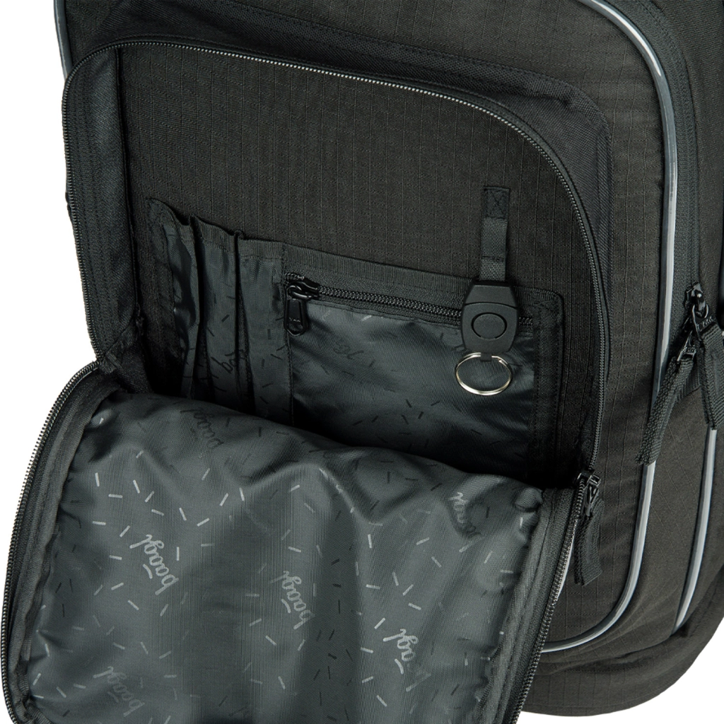 Kuprinėje yra trys atskiros užsegamos komoros su specializuotu vidiniu organizatoriumi ir skyriumi 15 colių nešiojamajam kompiuteriui arba planšetei. Priekinė komora turi praktišką organizatorių ir nuimamą karabiną raktams.