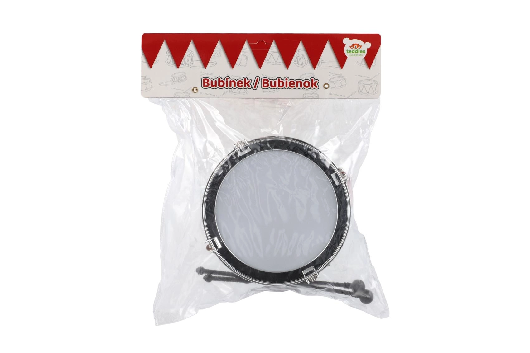 Lengvas ir patvarus plastinis būgnelis mažiesiems muzikantams suteikia daug pramogų namuose ir kelionėse. Dėl patogaus dirželio ir dviejų lazdelių vaikai gali būgnuoti stovėdami, eidami ir sėdėdami. Kompaktiniai matmenys 16 × 10 cm ir lengvas laikymas daro jį idealiu pasirinkimu vaikams nuo 3 metų.
