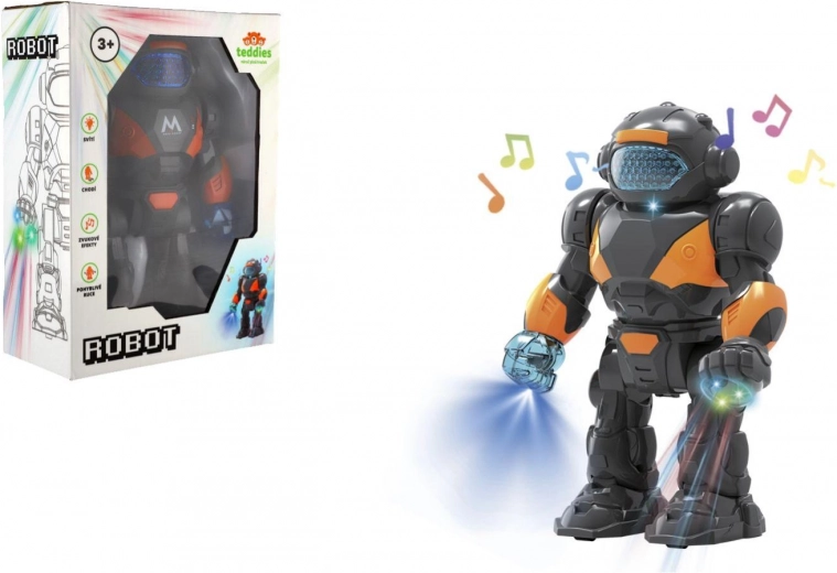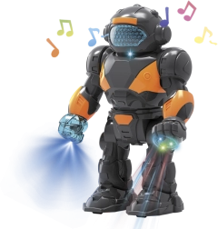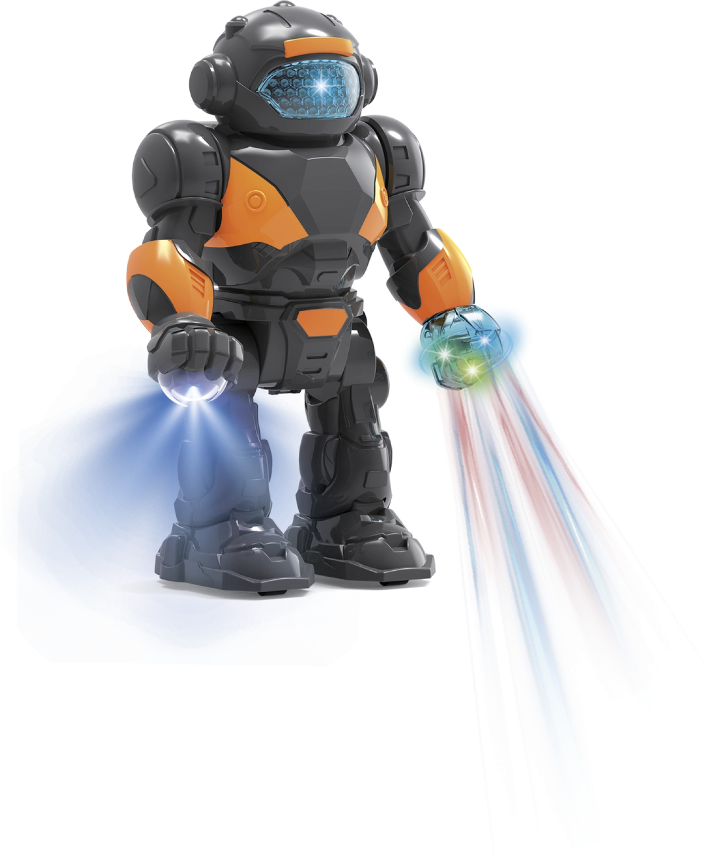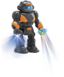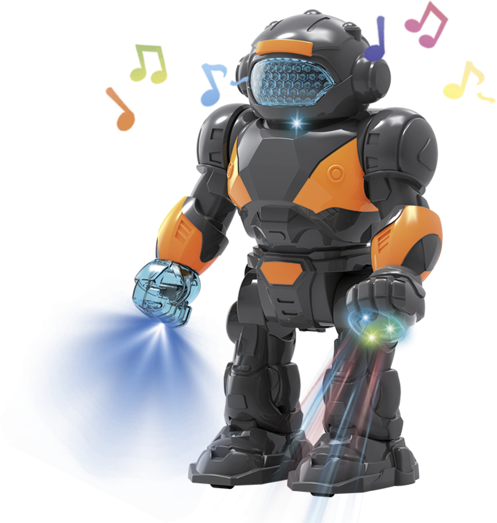 Linksmybės su šiuo 22 cm aukščio plastikiniu robotu nesibaigia. Paprastu įjungimu jį paleisite ir jis taps neatsiejama kiekvieno žaidimo dalimi. Tinka vaikams nuo 3 metų, šis robotas gali kovoti su įsibrovėliais arba saugoti kosminę bazę. Tai puikus žaislas, lavinantis mažųjų vaizduotę ir jų motorinius įgūdžius. Įjungus robotas siūlo: