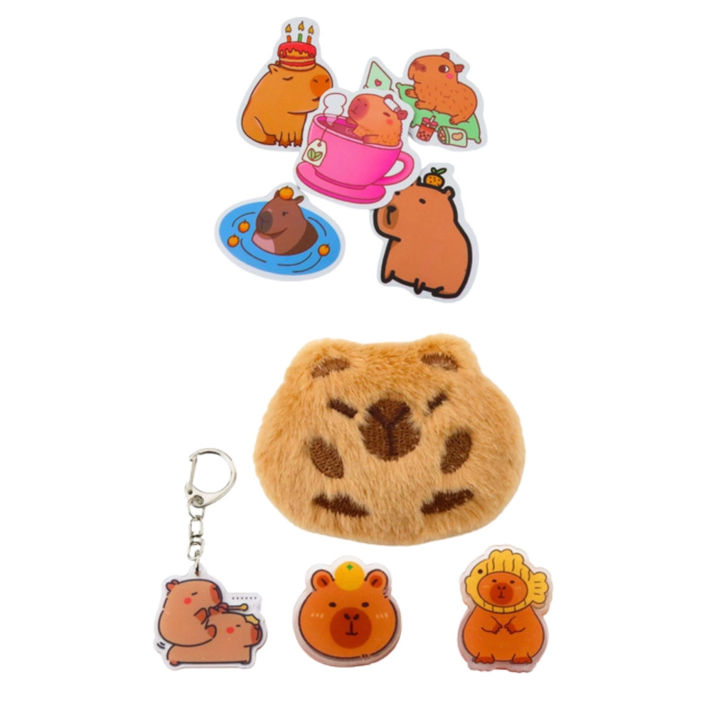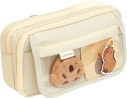 Penalas pagamintas iš patvarios medžiagos, kuri užtikrina ilgą tarnavimo laiką. Jo elegantiška smėlio spalva tinka įvairiems stiliams. Taip pat komplekte yra pliušinė kapibara, kurią galima segti prie penalo, kuprinės ar drabužių. Priedų rinkinį papildo pakabukas su kapibaros motyvu, du segtukai ir penki kapibarų lipdukai.
